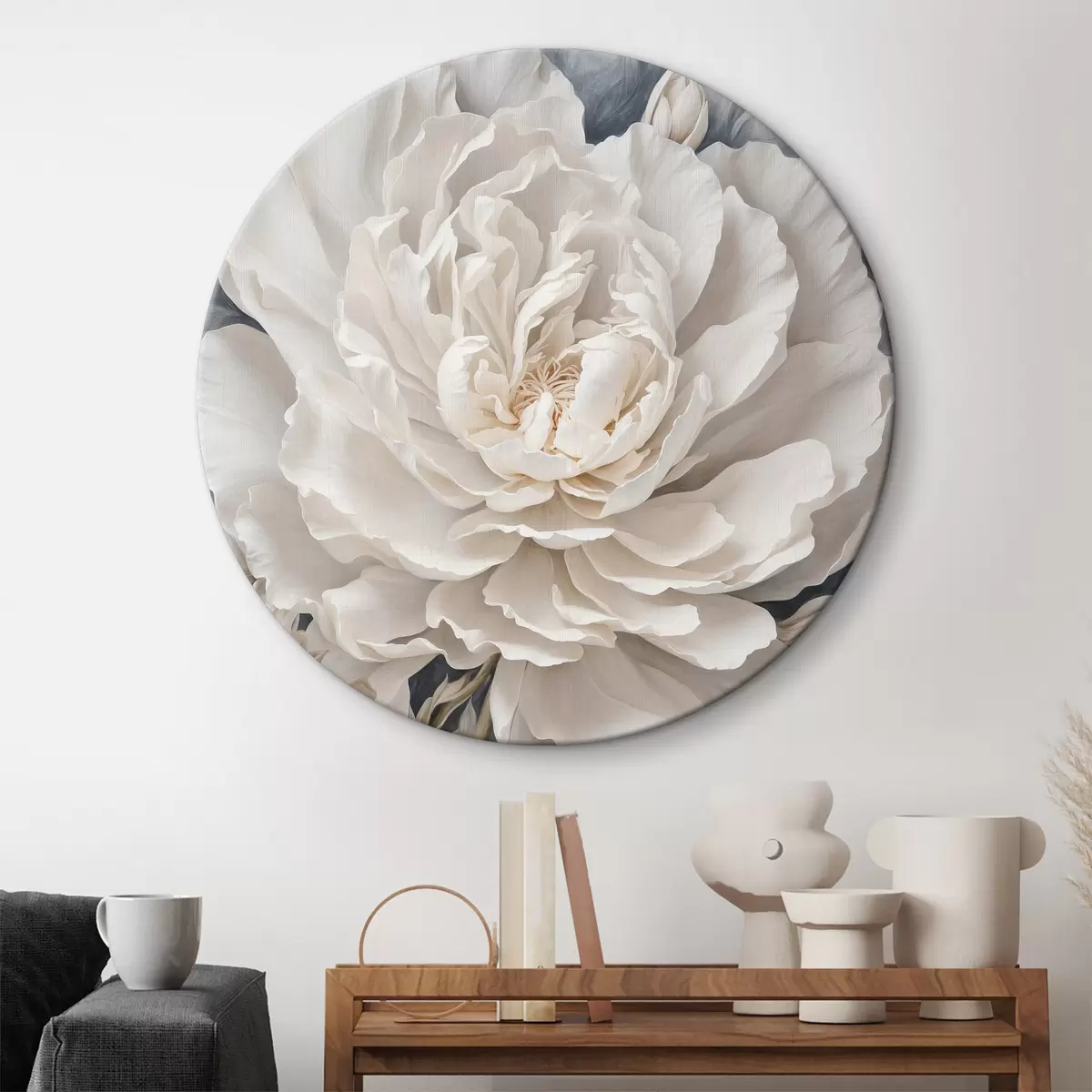 Tableaux rondes Pivoine sur fond gris r38191
