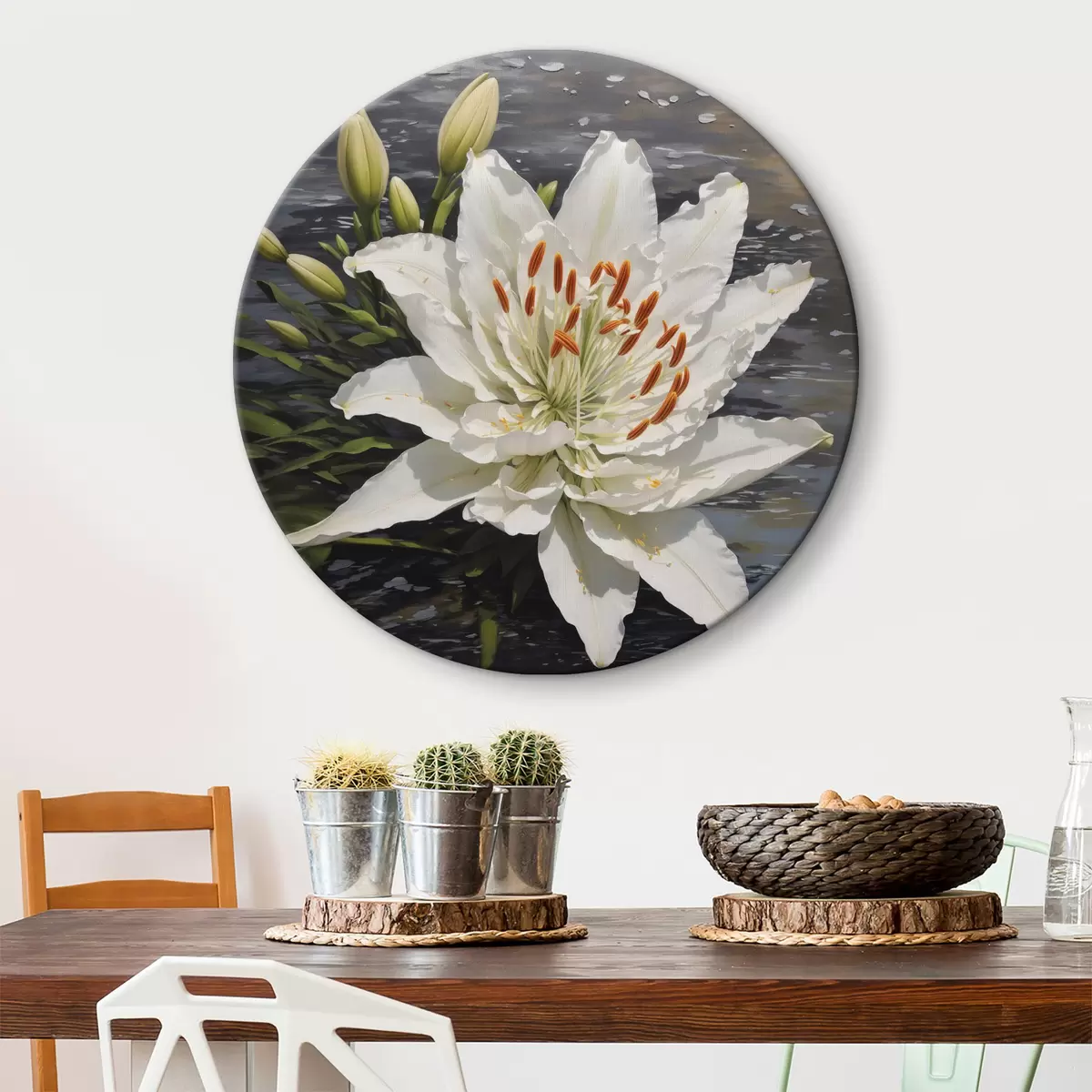 Tableaux rondes Fleur blanche avec étamines et boutons orange Nr r38192