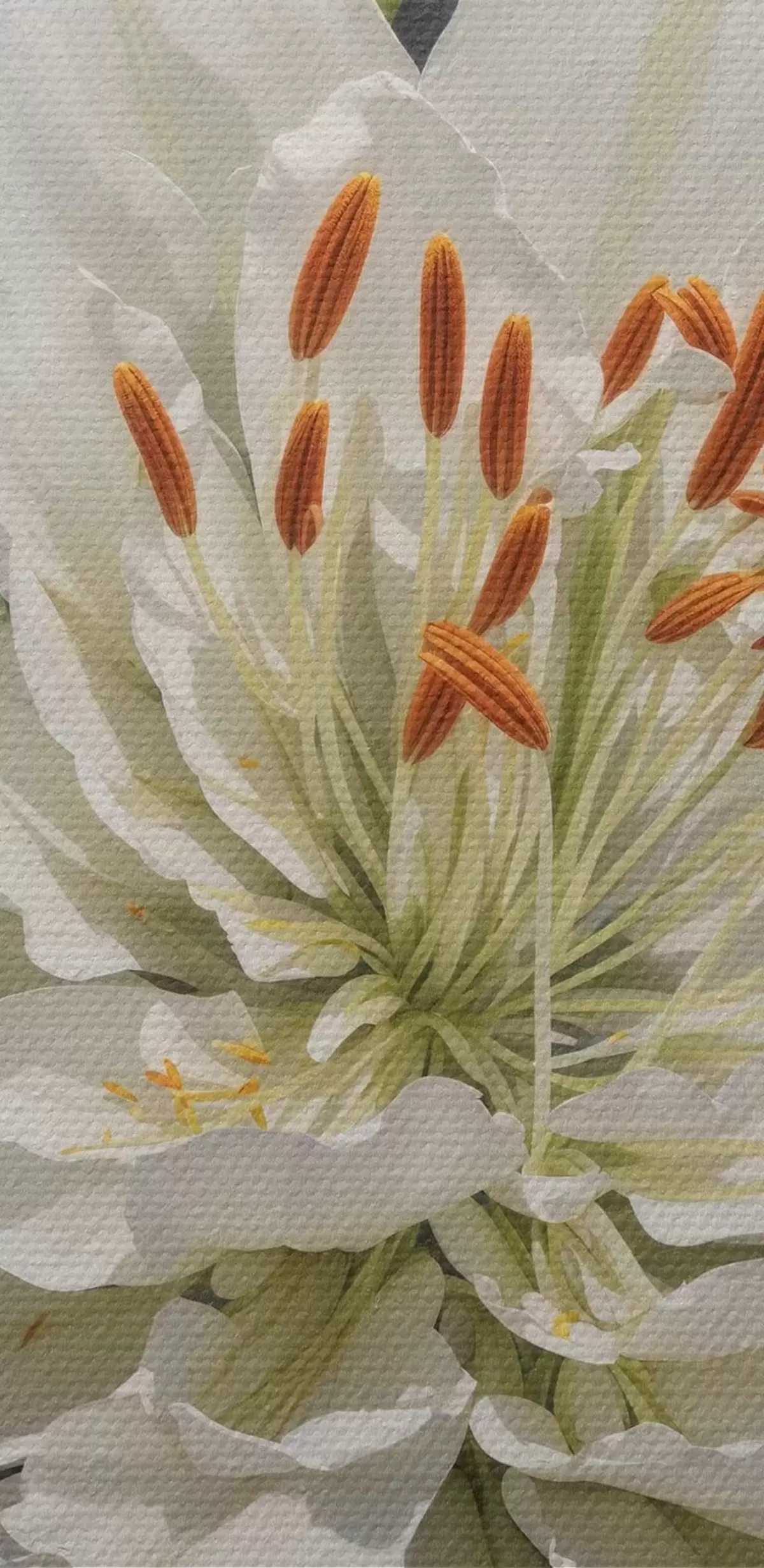 Tableaux rondes Fleur blanche avec étamines et boutons orange r38192