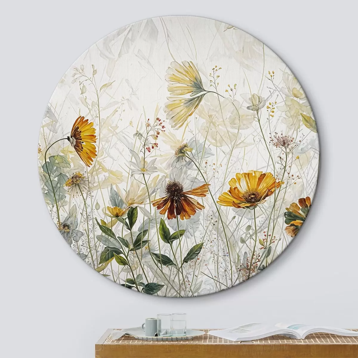 Tableaux rondes Fleurs délicates de champ sur la peinture à l'huile de fond blanc Nr r38197