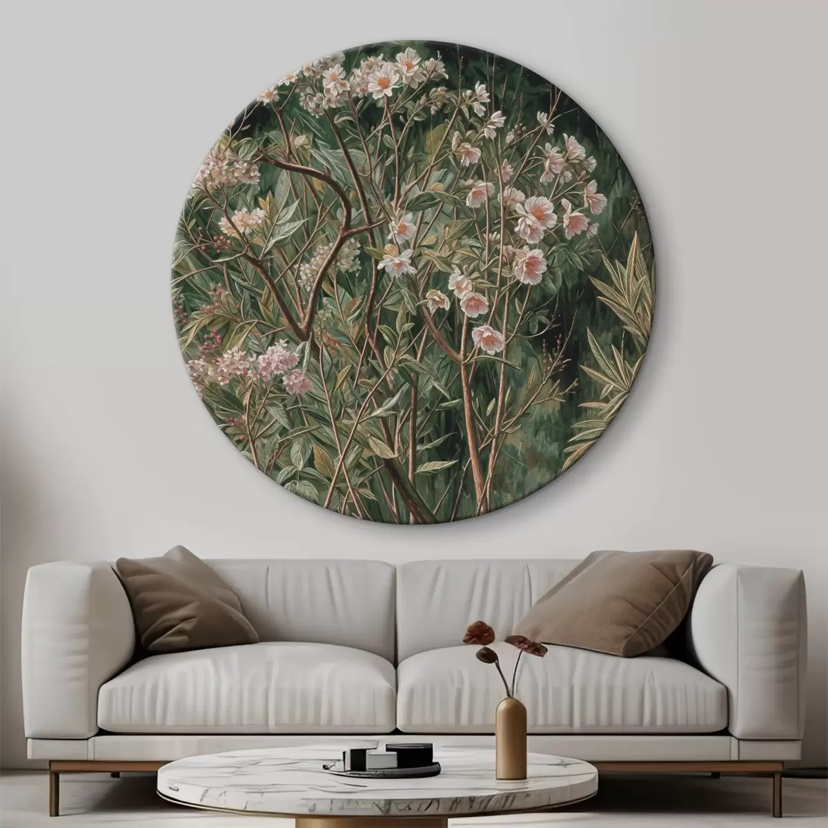 Tableaux rondes Peindre un buisson avec des fleurs Nr r38198