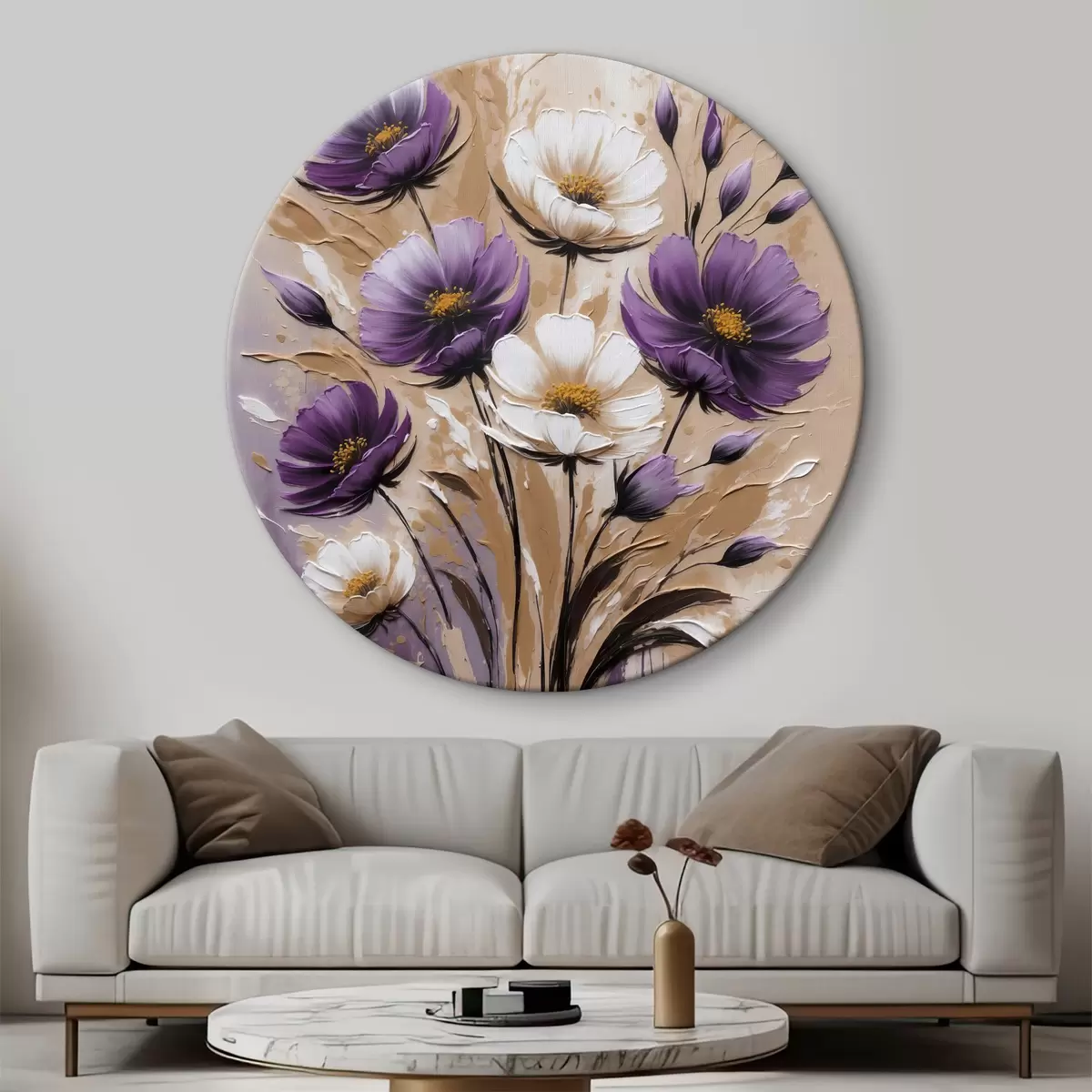 Tableaux rondes Bouquet de fleurs violettes et blanches Nr r38225