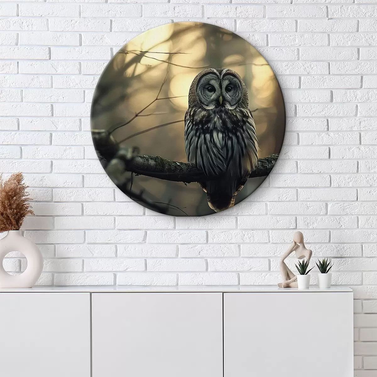 Tableaux rondes Une chouette assise sur une branche Nr r38248