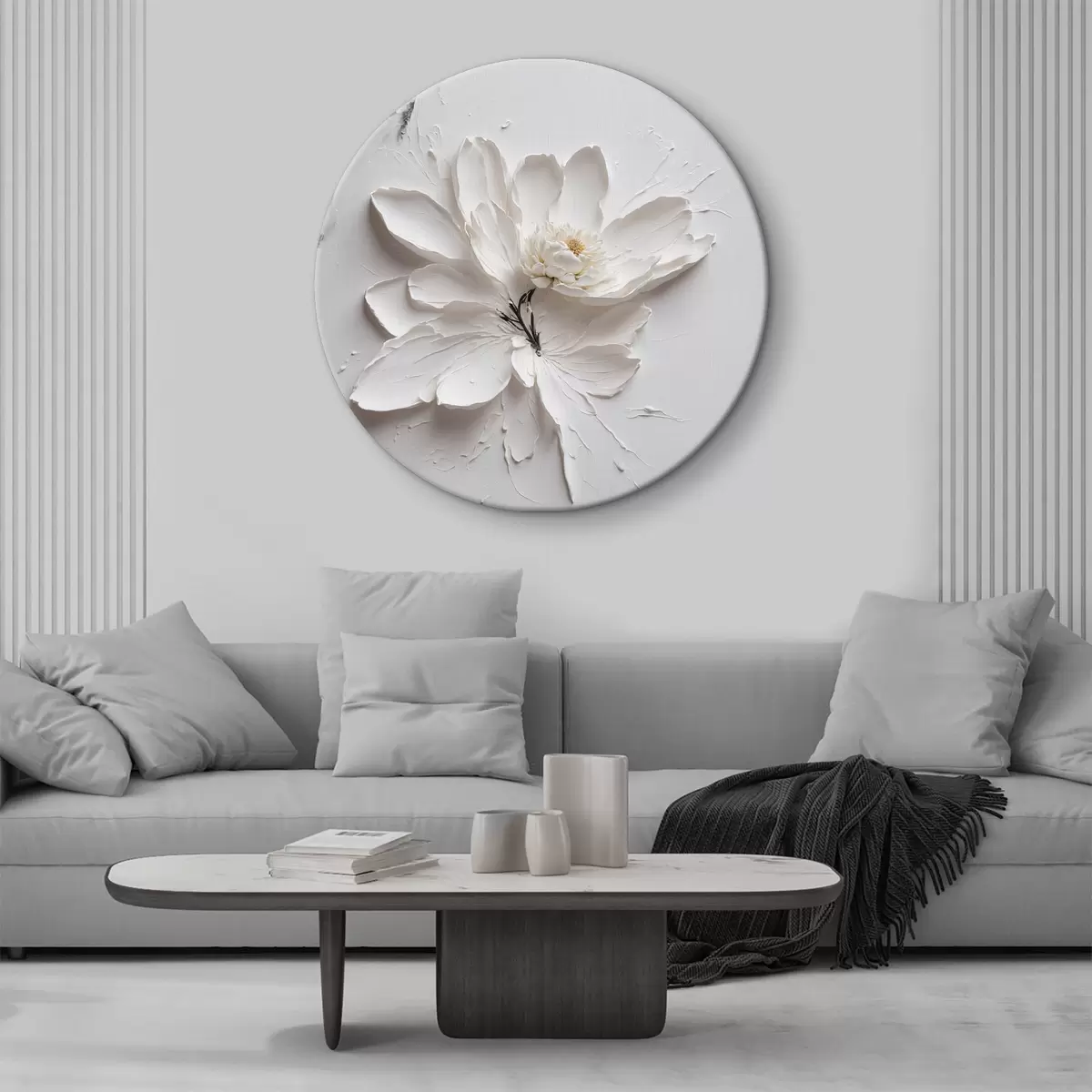 Tableaux rondes Fleur blanche à l'huile Nr r38303