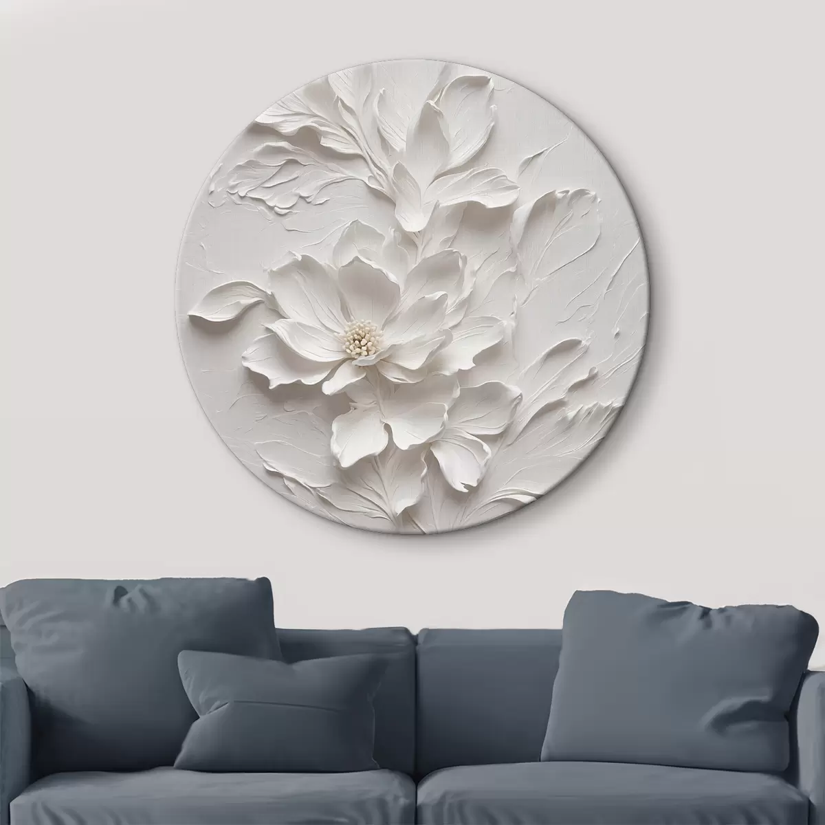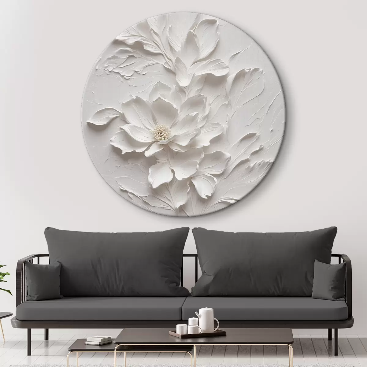 Tableaux rondes Fleur blanche sur fond blanc dans l'huile r38305