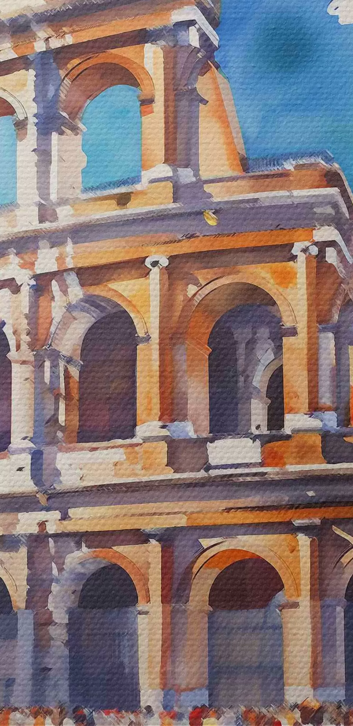 Tableaux rondes Aquarelle d'un grand bâtiment avec de nombreuses arches Nr r38326