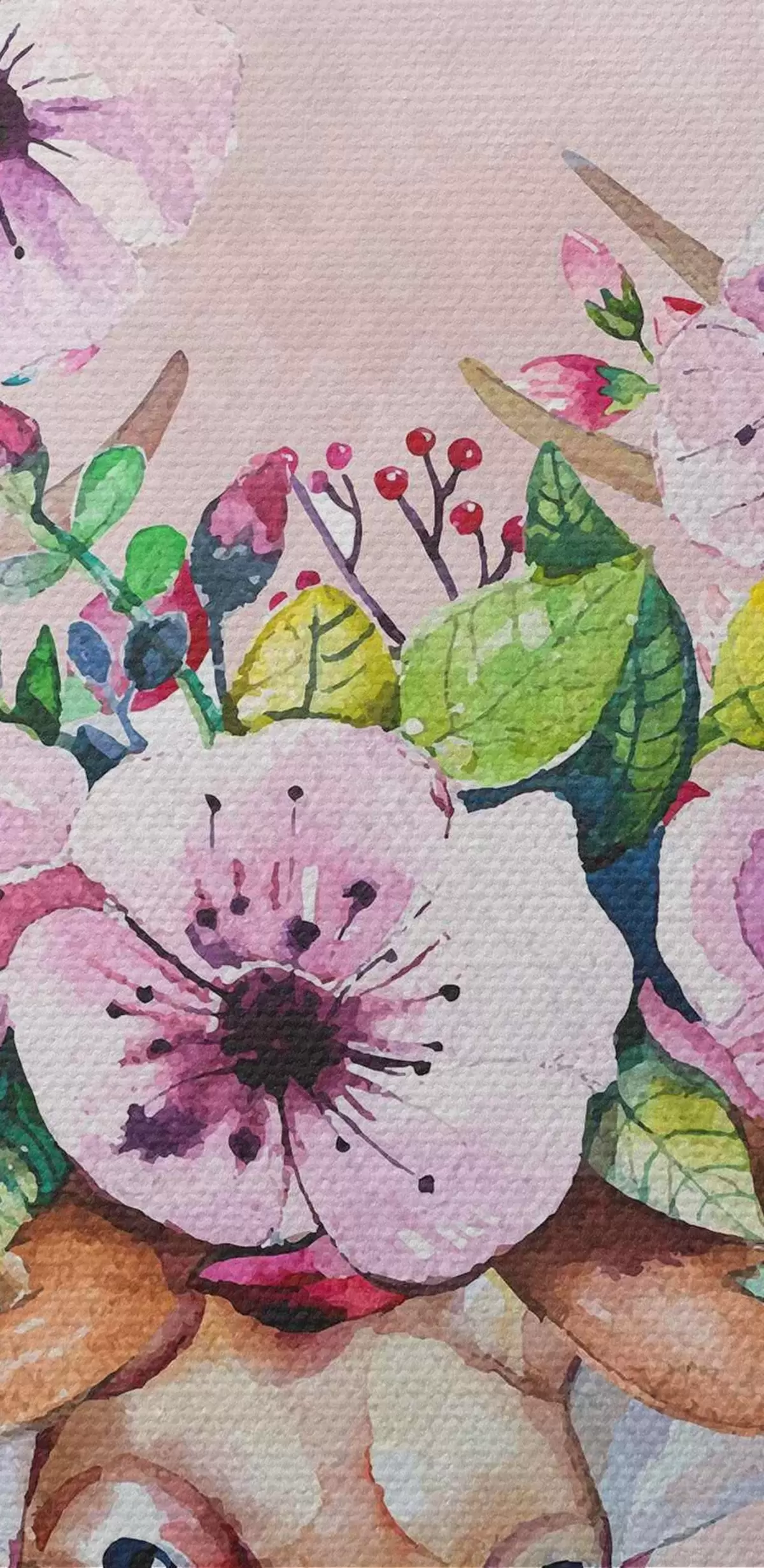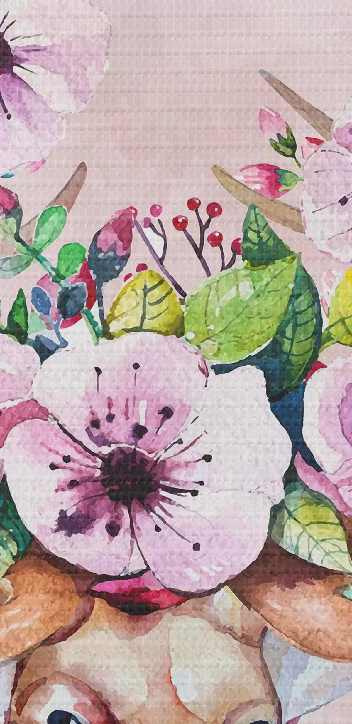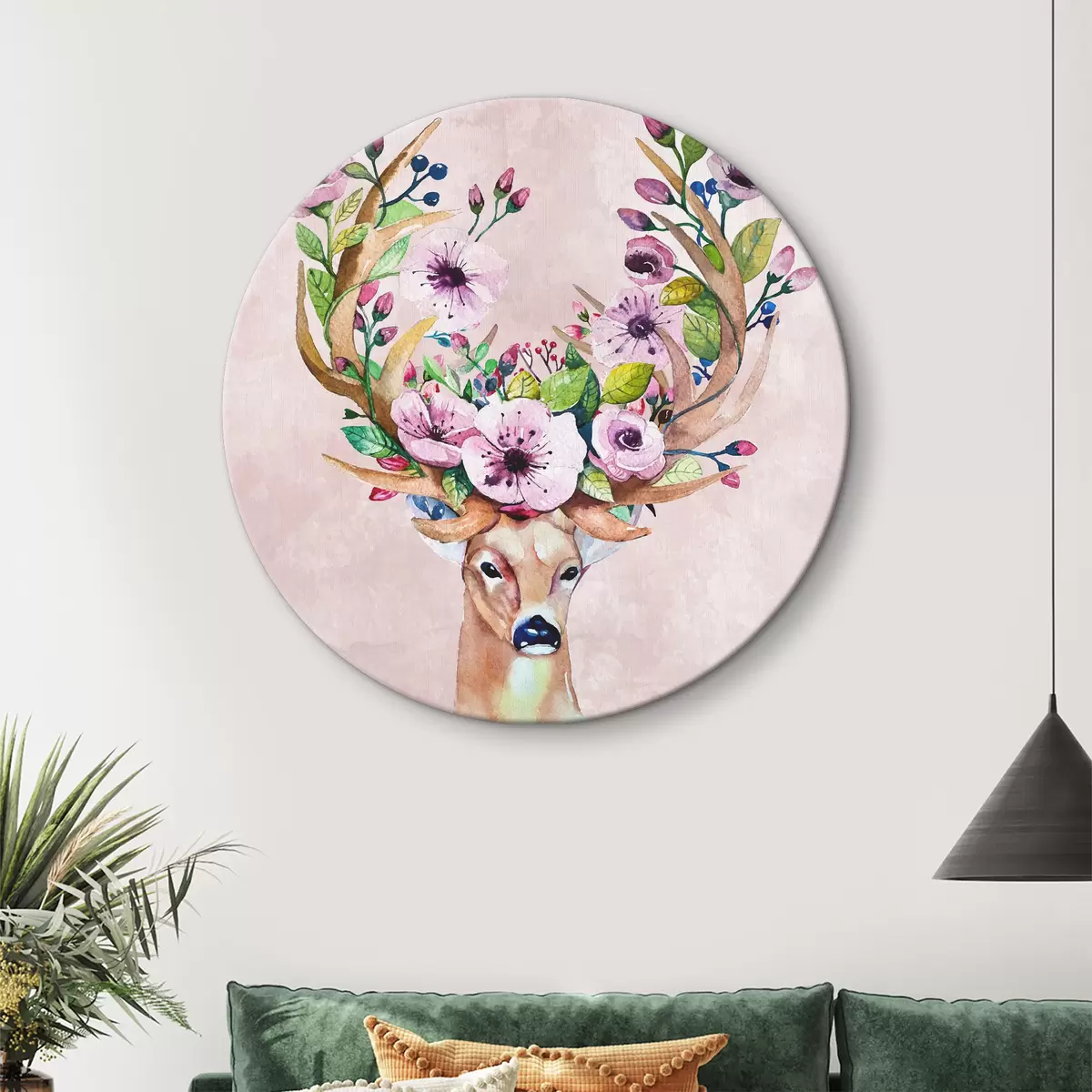 Tableaux rondes Peinture à l'aquarelle d'un cerf avec des fleurs sur ses bois Nr r38331