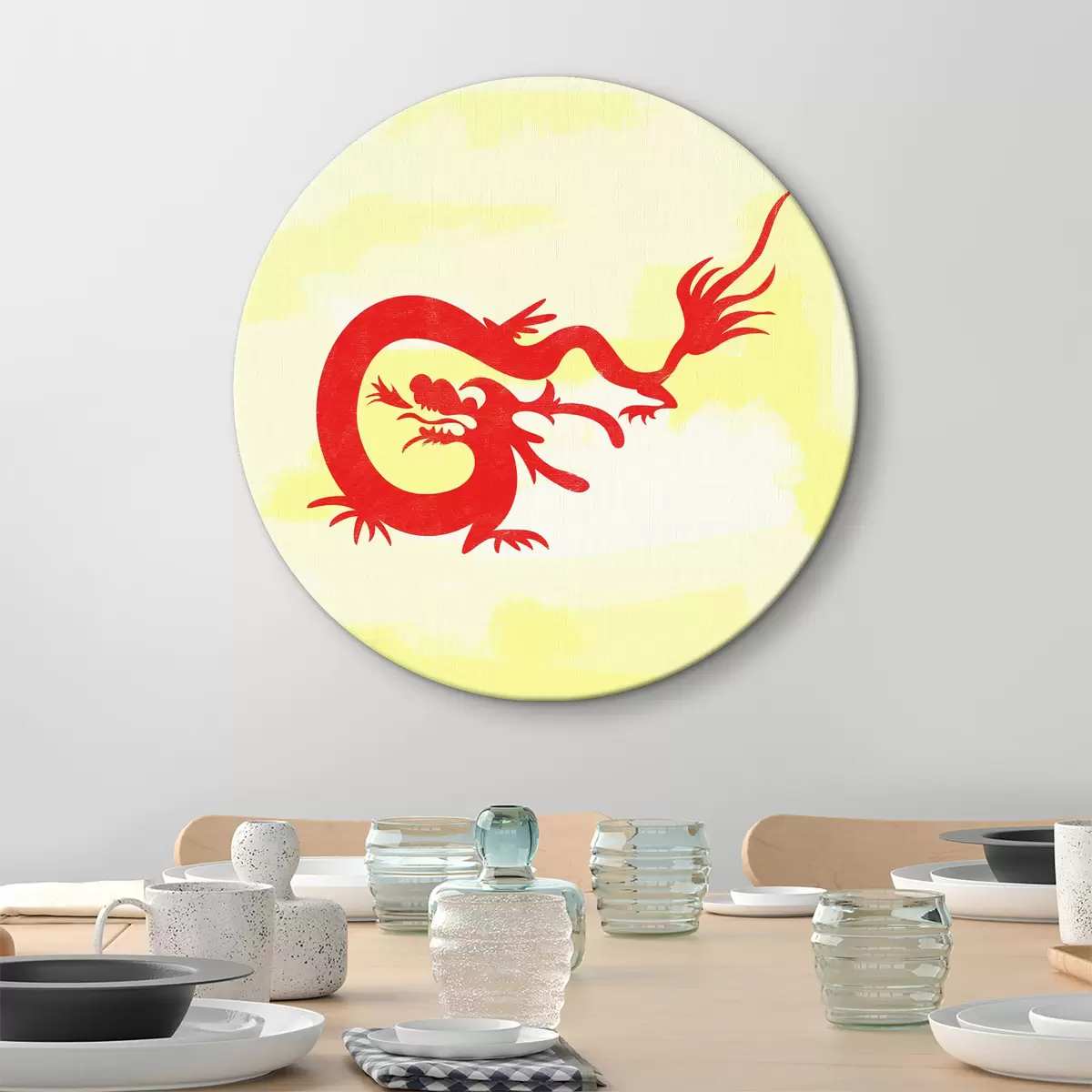 Tableaux rondes Dragon rouge sur fond jaune Nr r38338
