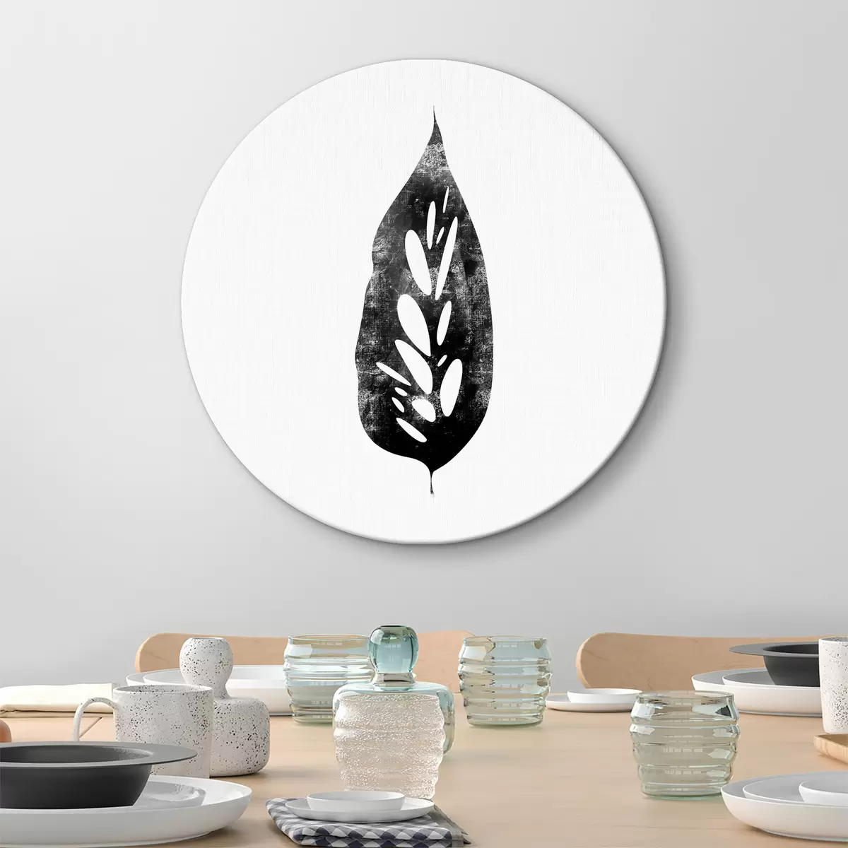 Tableaux rondes Feuille en noir et blanc Nr r38343
