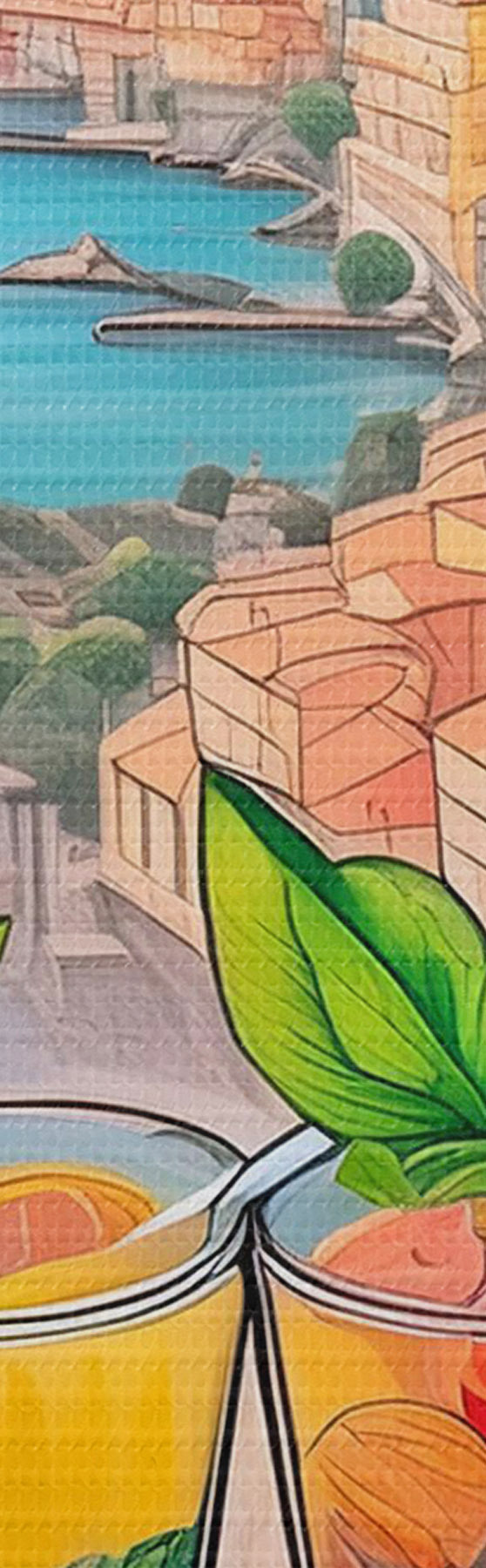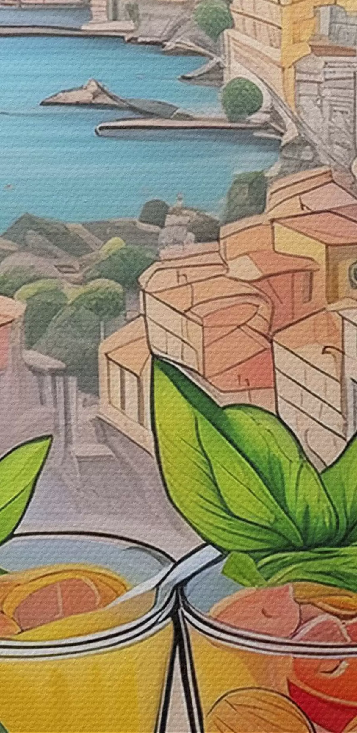 Tableaux rondes Ville italienne, côte maritime, cocktails, vocation, architecture, été, aquarelle r38392