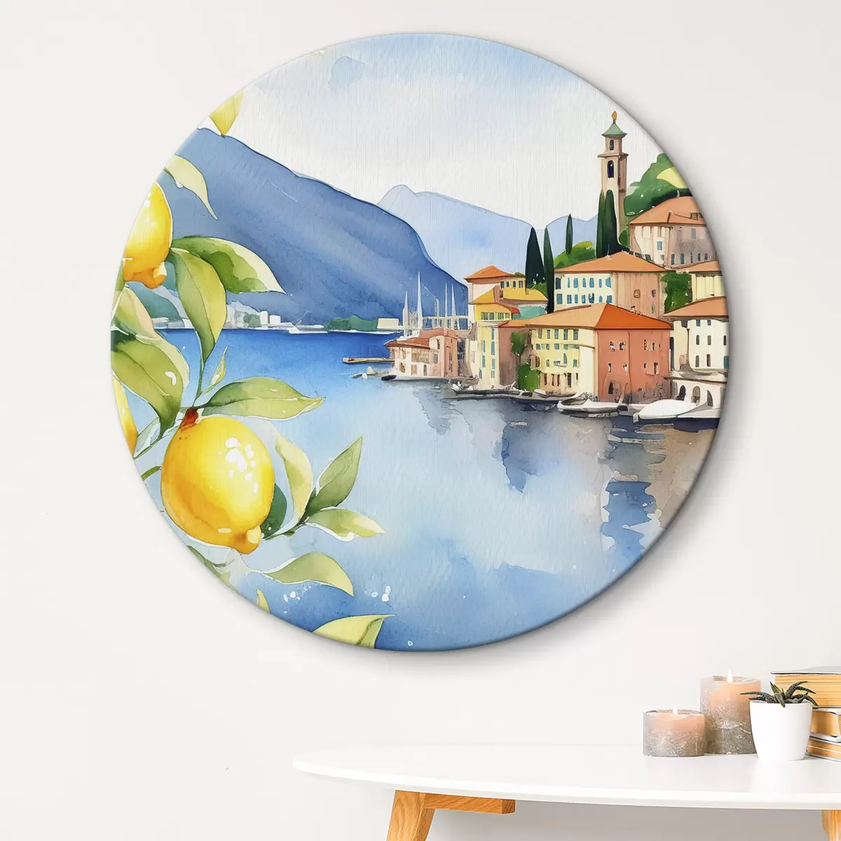 Tableaux rondes Lac italien, été, aquarelle, paysage naturel, citrons, architecture urbaine Nr r38397
