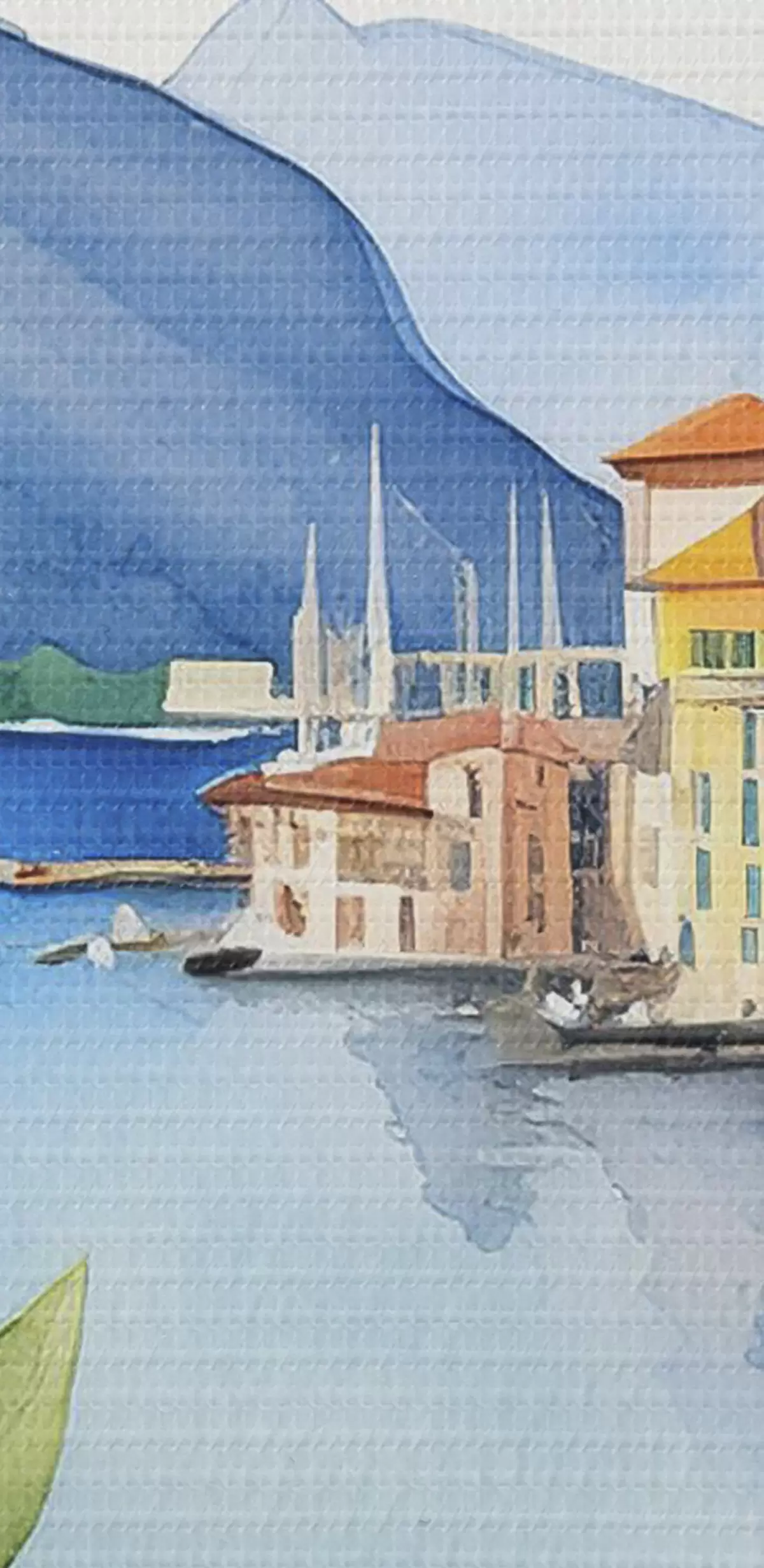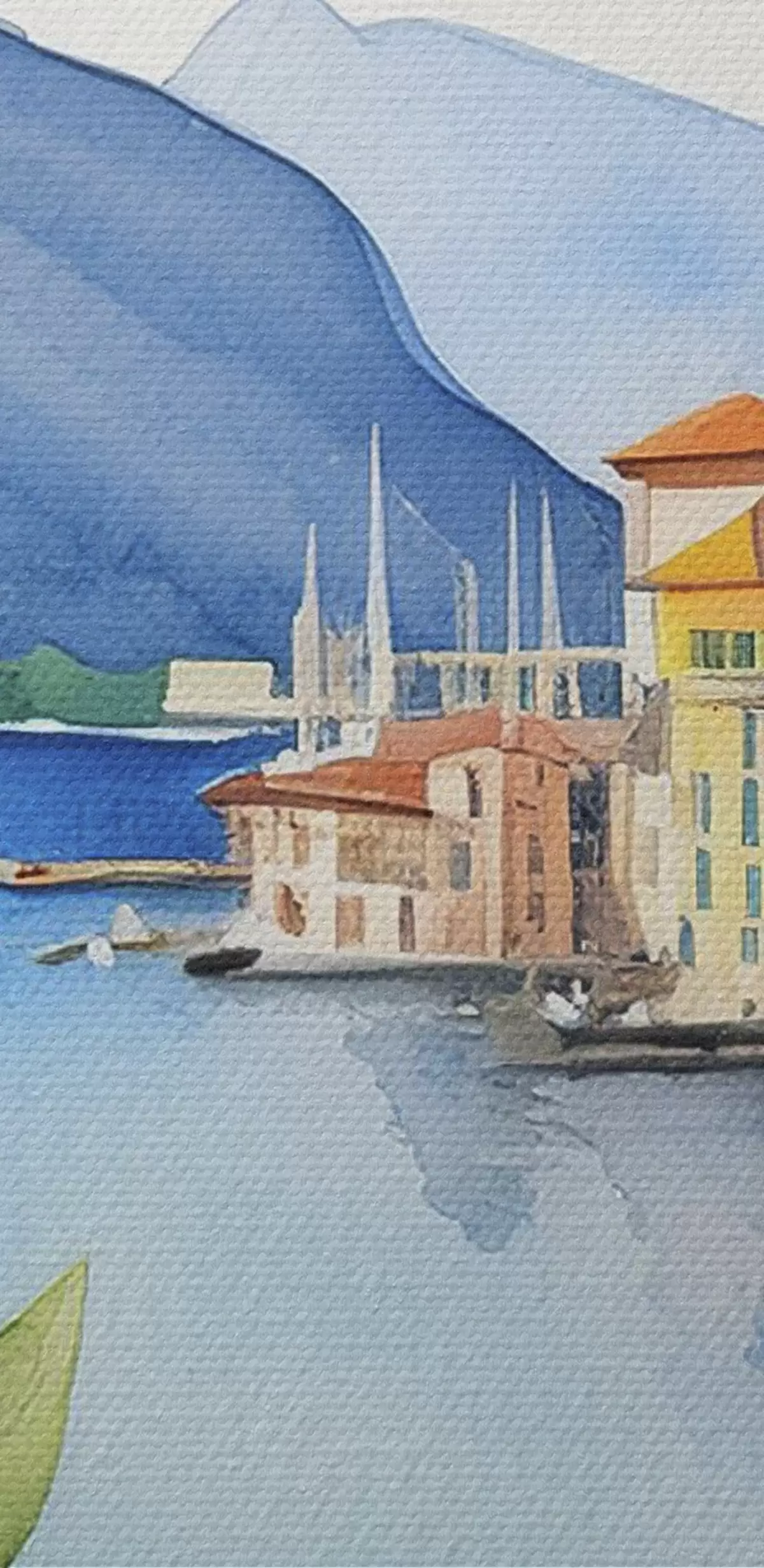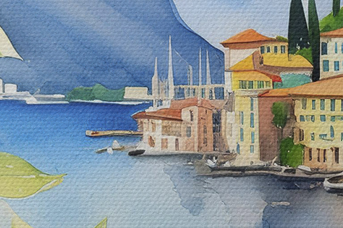 Tableaux rondes Lac italien, été, aquarelle, paysage naturel, citrons, architecture urbaine r38397