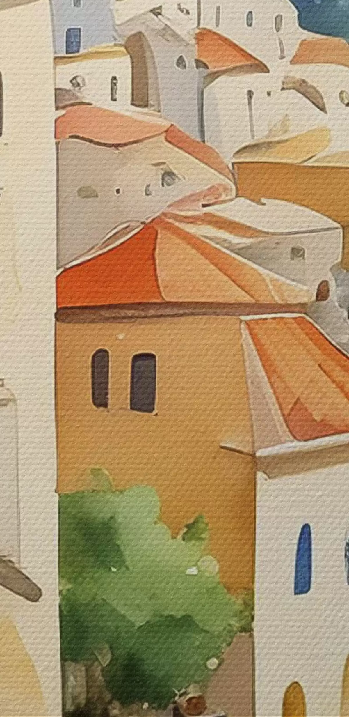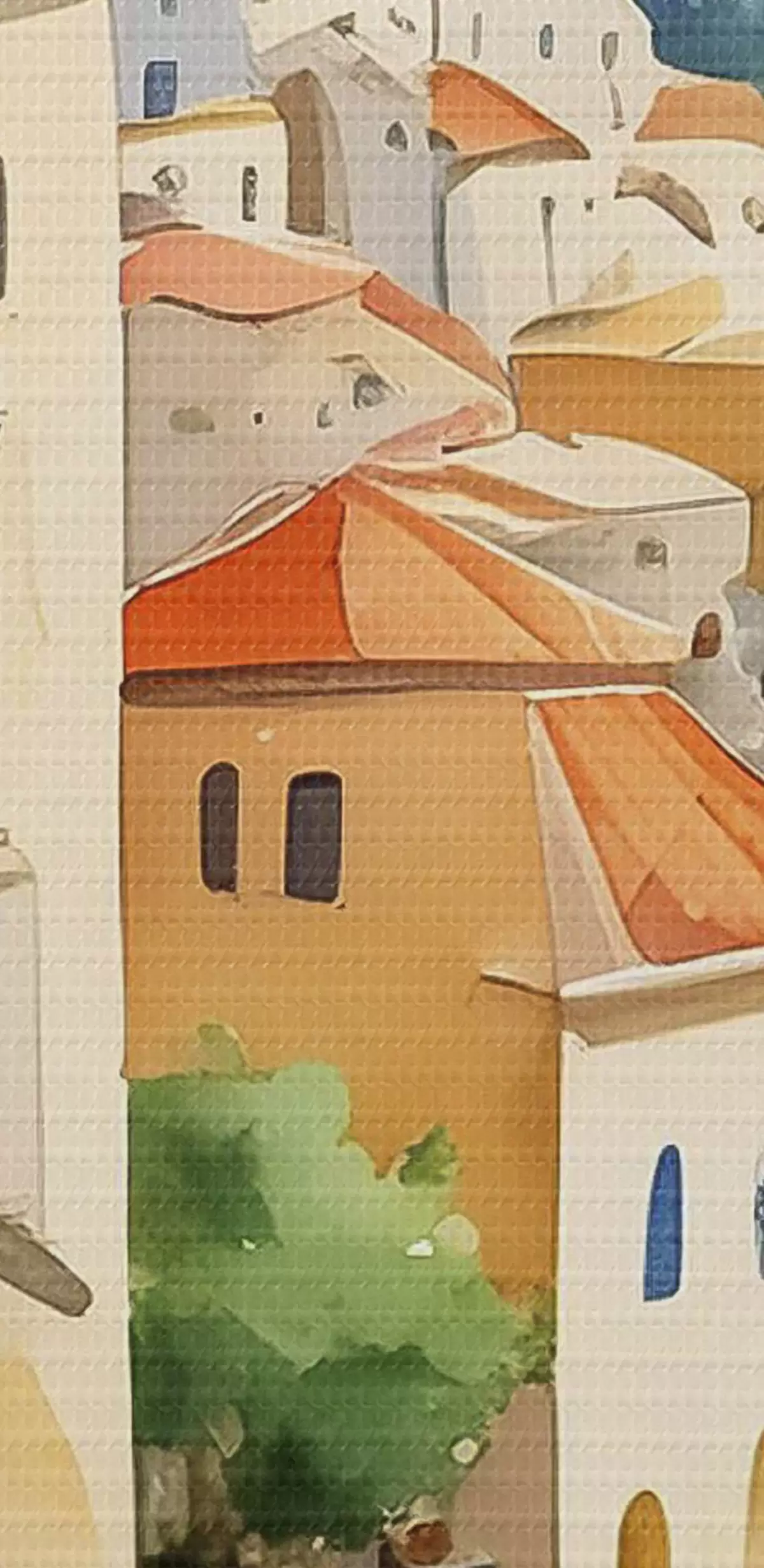 Tableaux rondes Une aquarelle représentant une ville sur une colline au-dessus de la mer Nr r38409