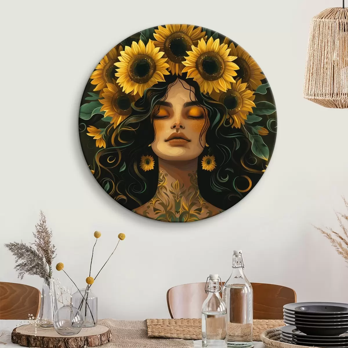 Tableaux rondes Femme avec des tournesols dans les cheveux r38412