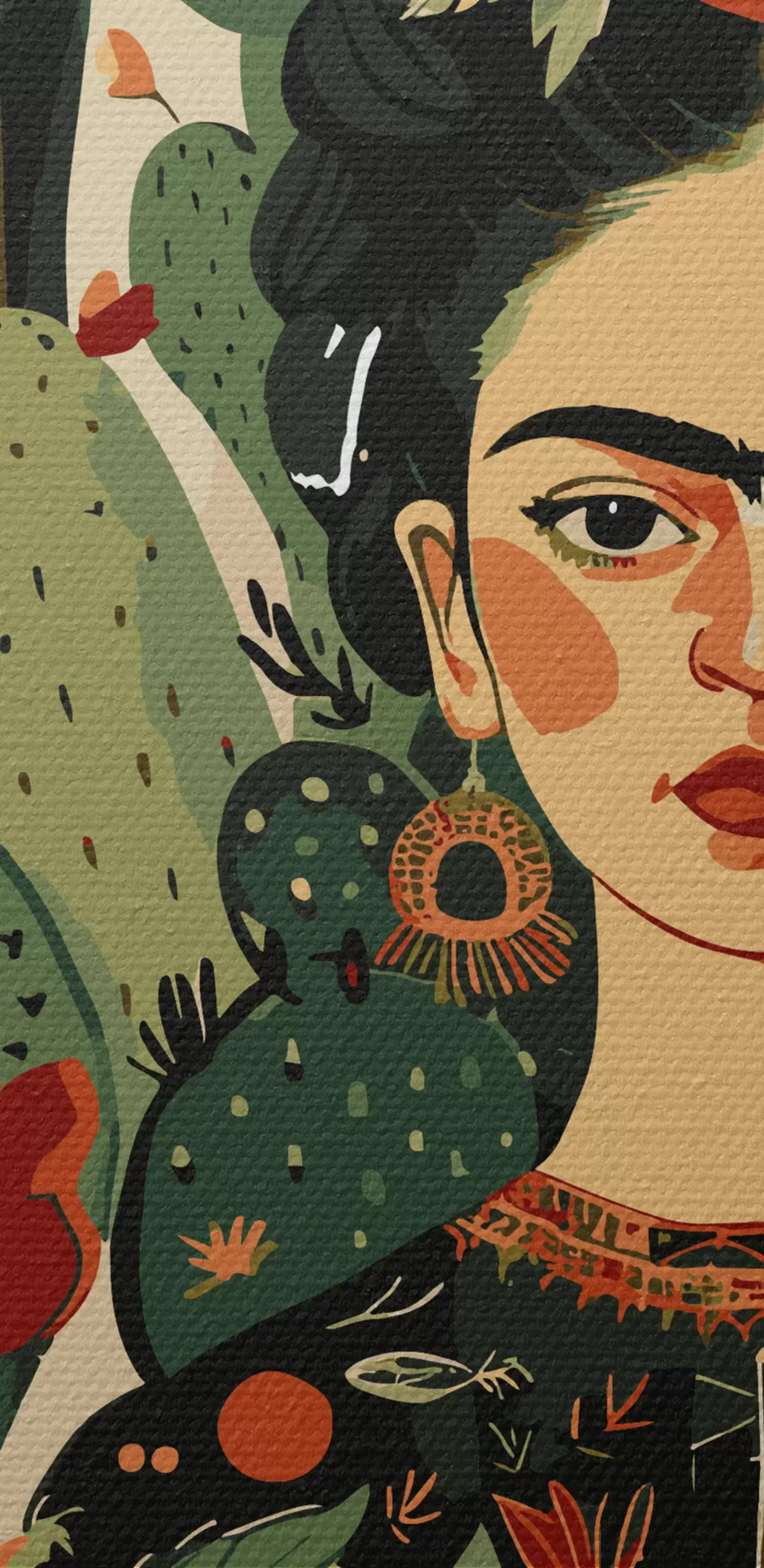 Tableaux rondes Frida sur fond de motif de cactus r38415