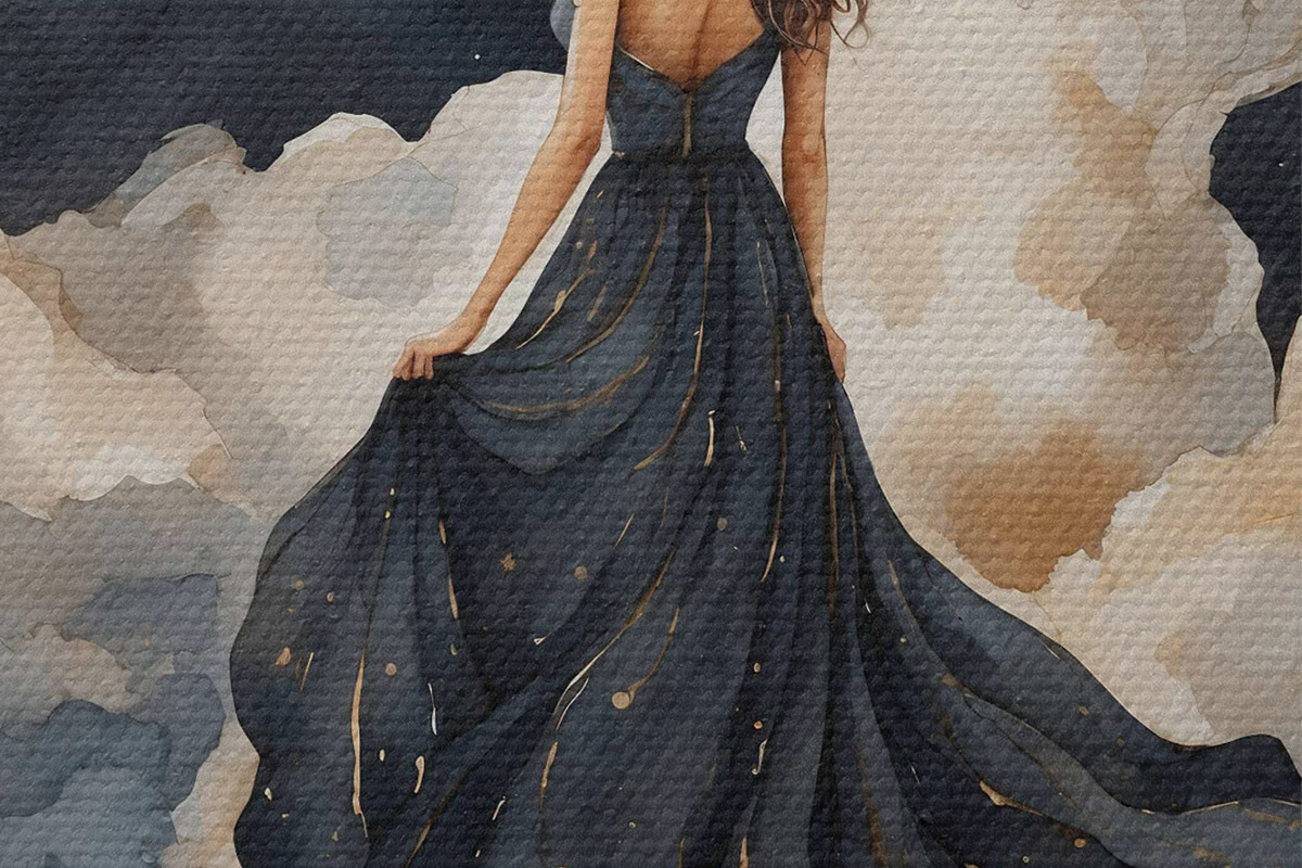 Tableaux rondes Femme en robe bleue et lune dans le ciel r38428
