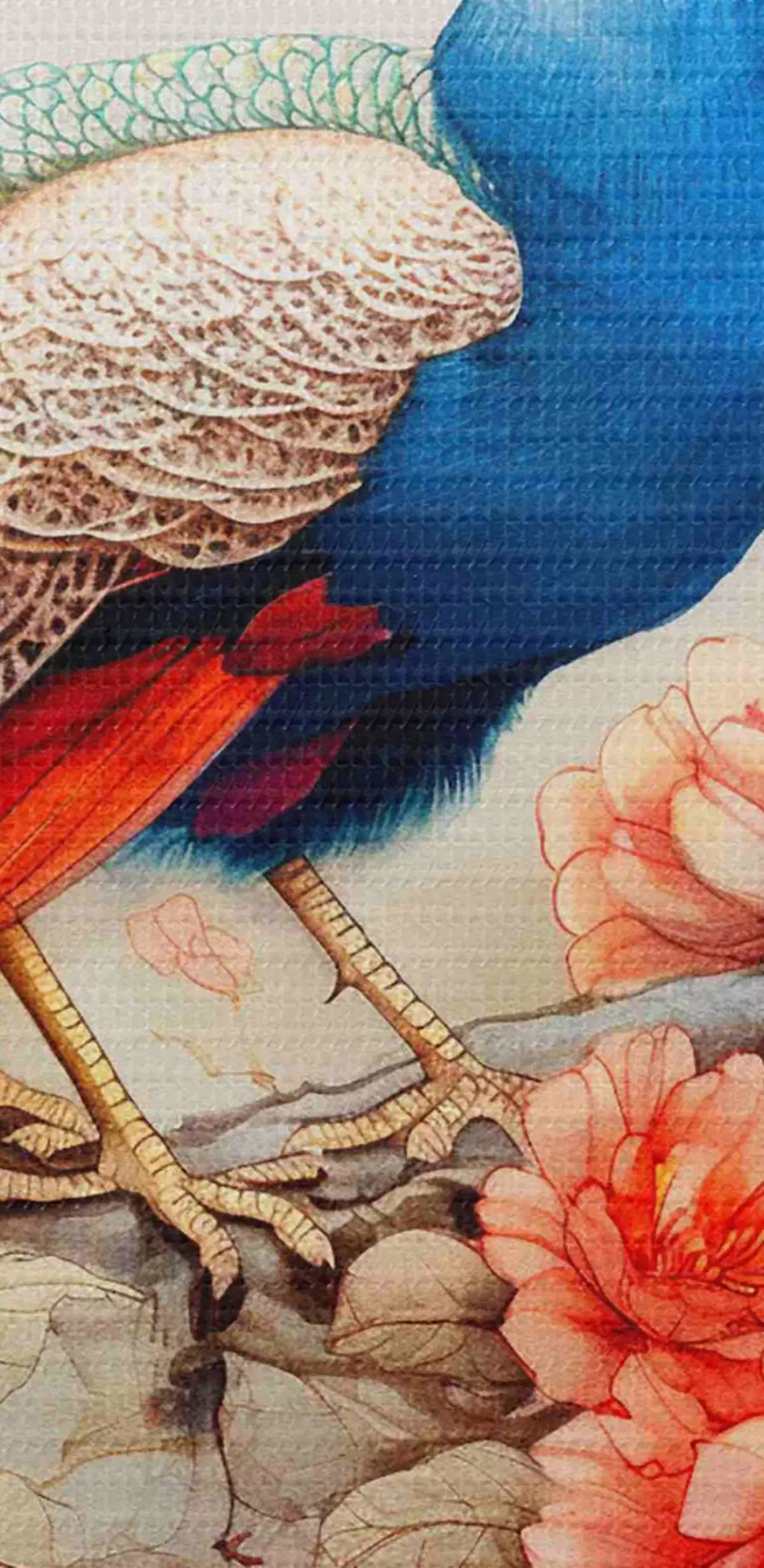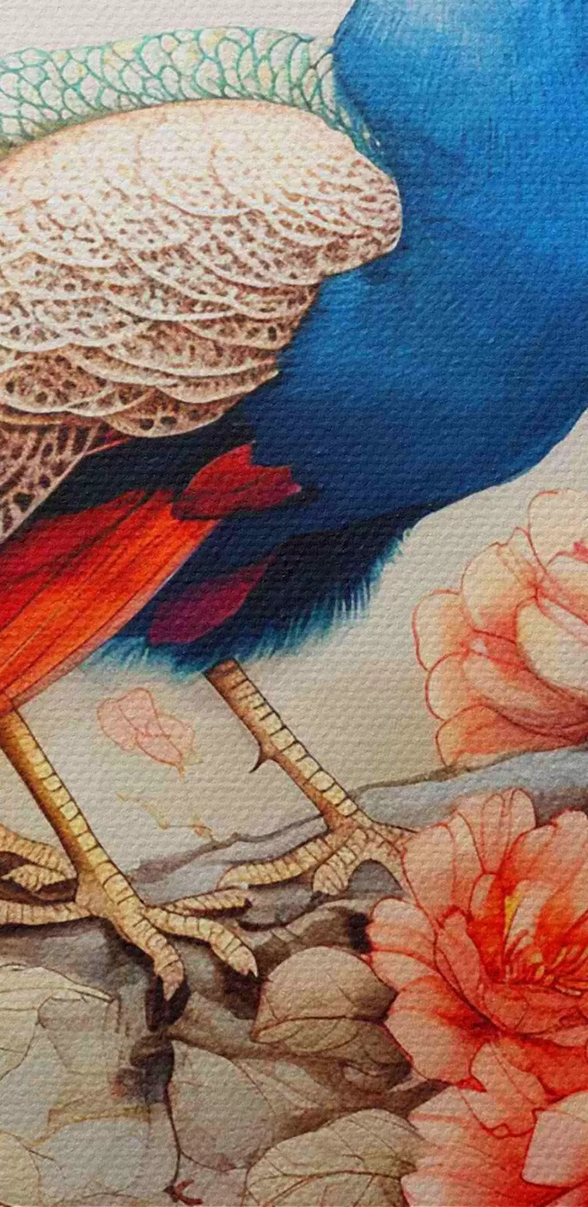 Tableaux rondes Peinture représentant un paon sur une branche avec des fleurs r38451