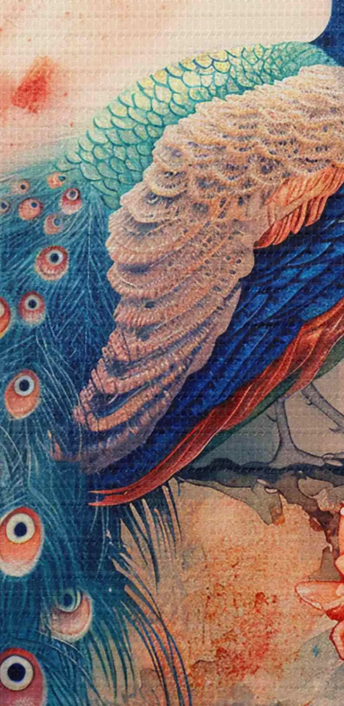 Tableaux rondes Peinture représentant un paon sur une branche avec des fleurs Nr r38455