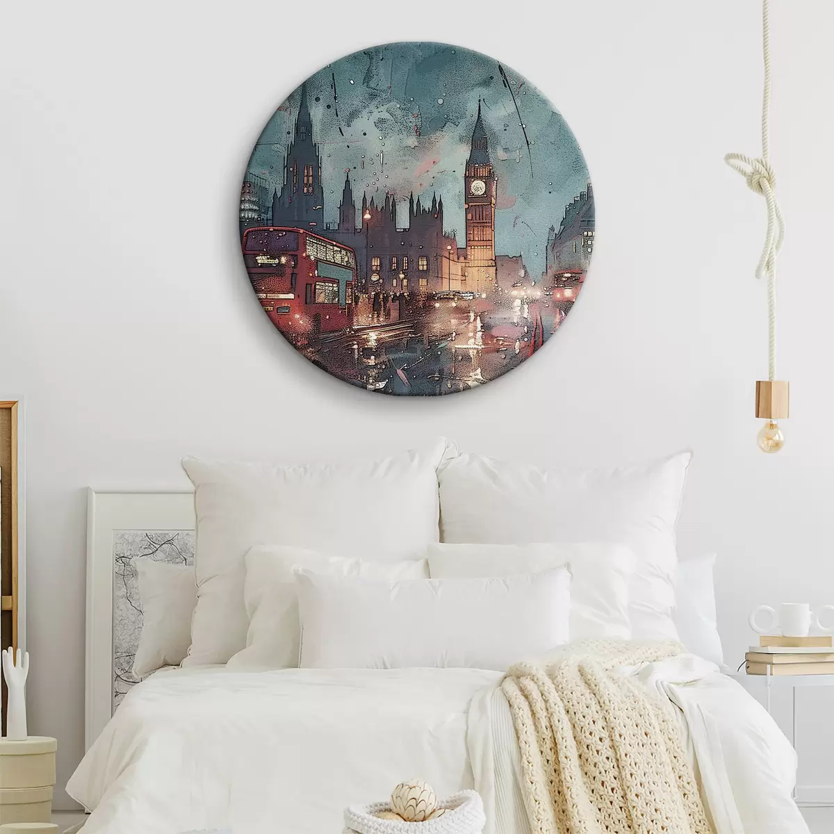 Tableaux rondes Rue de la ville avec tour d'horloge Nr r38472