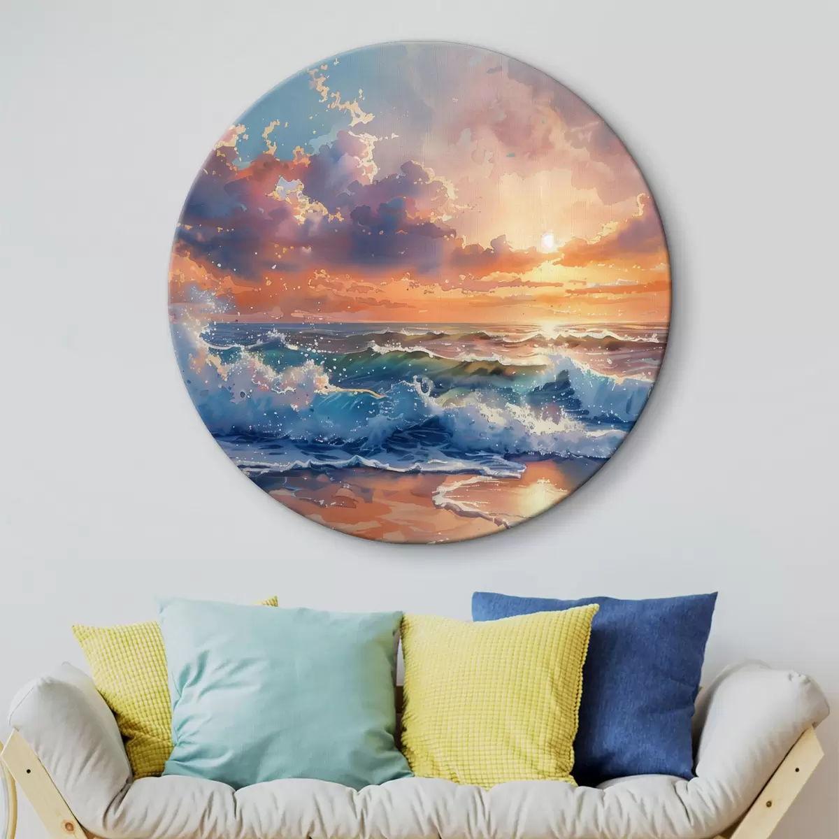 Tableaux rondes Coucher de soleil sur fond de vagues Nr r38474