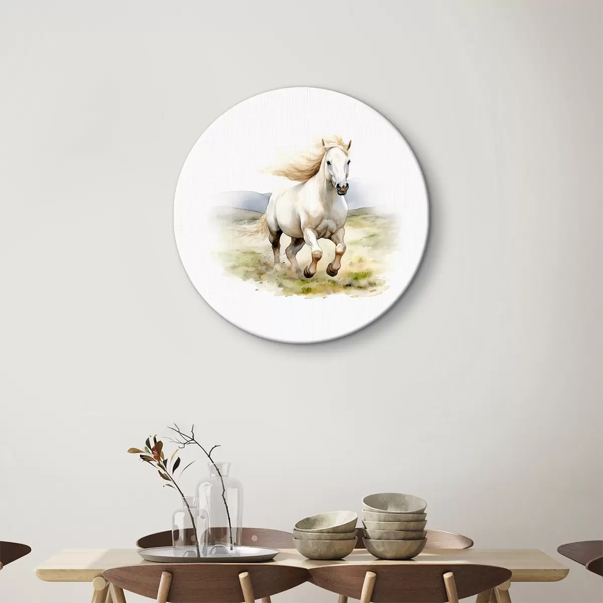 Tableaux rondes Cheval blanc courant dans le champ Nr r38477