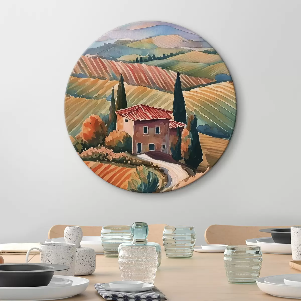 Tableaux rondes Peindre une maison dans un champ avec des champs r38487