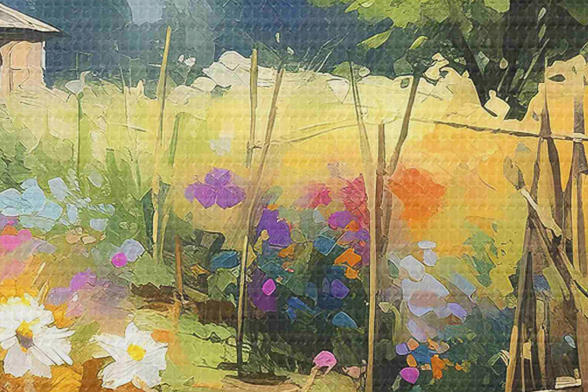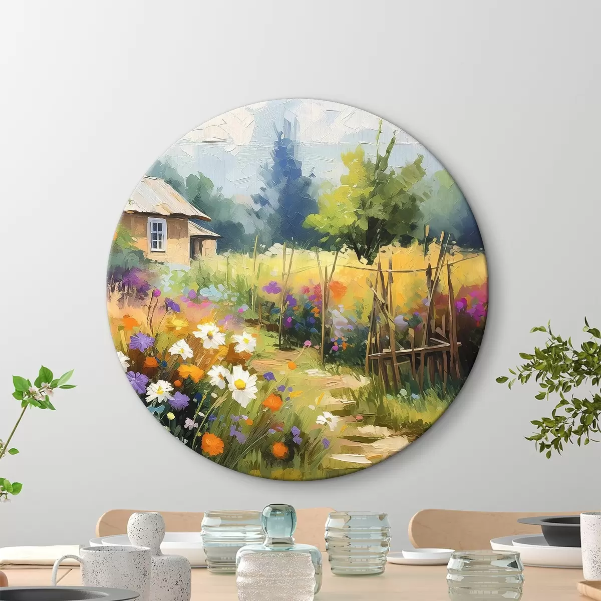 Tableaux rondes Peinture de la maison et des fleurs Nr r38492