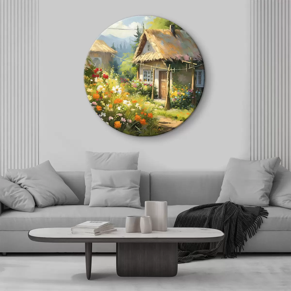 Tableaux rondes Peindre la maison avec des fleurs r38493
