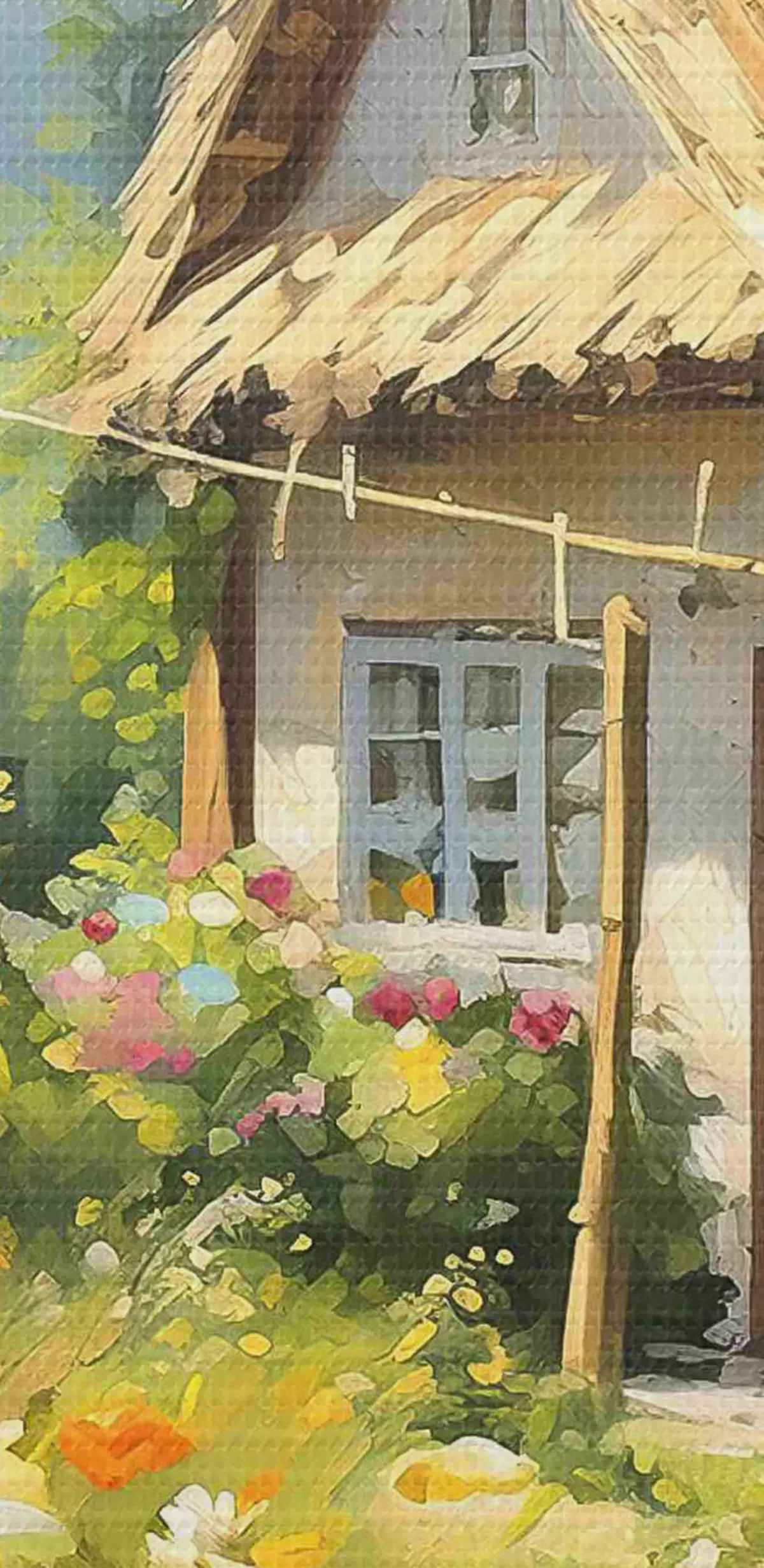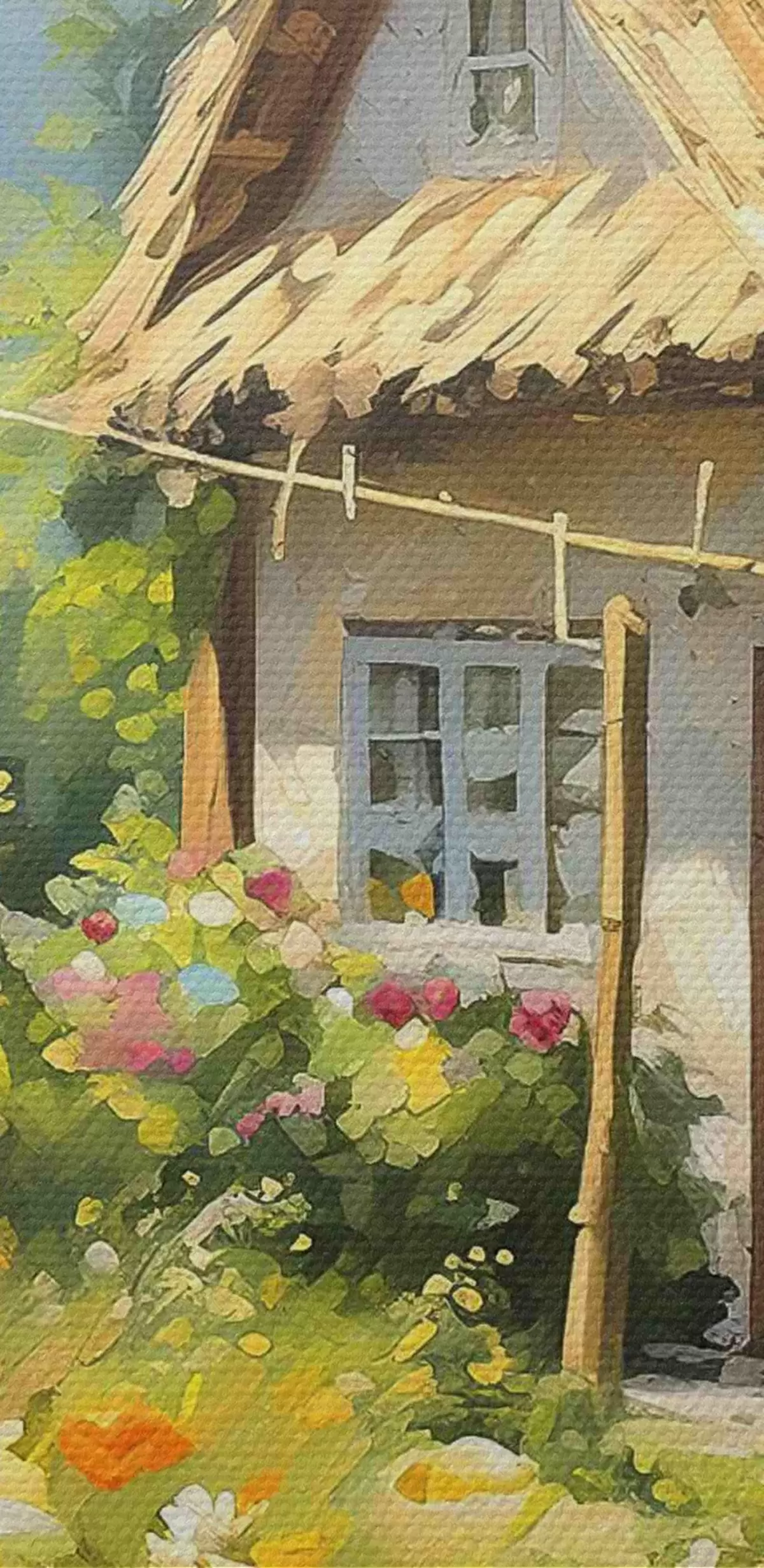 Tableaux rondes Peindre la maison avec des fleurs Nr r38493