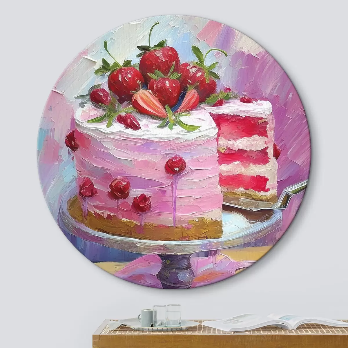 Tableaux rondes Peindre un gâteau avec un morceau de gâteau Nr r38498