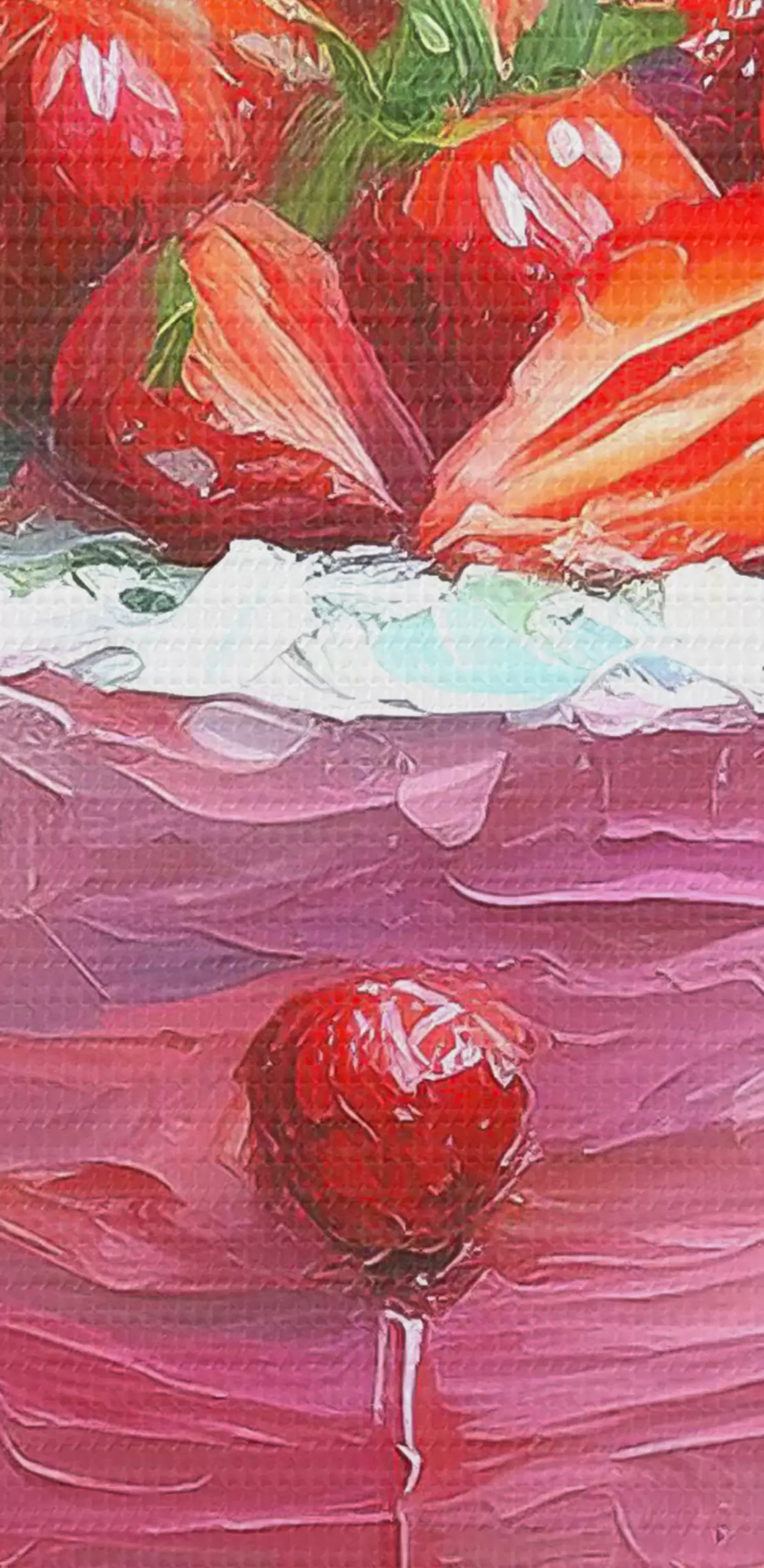 Tableaux rondes Gâteau aux fraises à la crème, peinture à l'huile, grands coups de pinceau, baies d'été, couleurs roses r38499