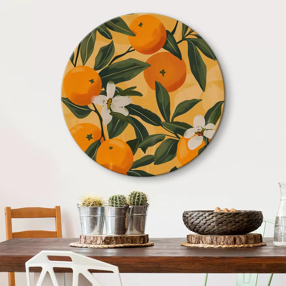 Tableaux rondes Motif de fleurs orange et blanches Nr r38513