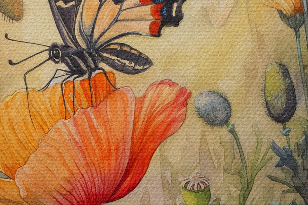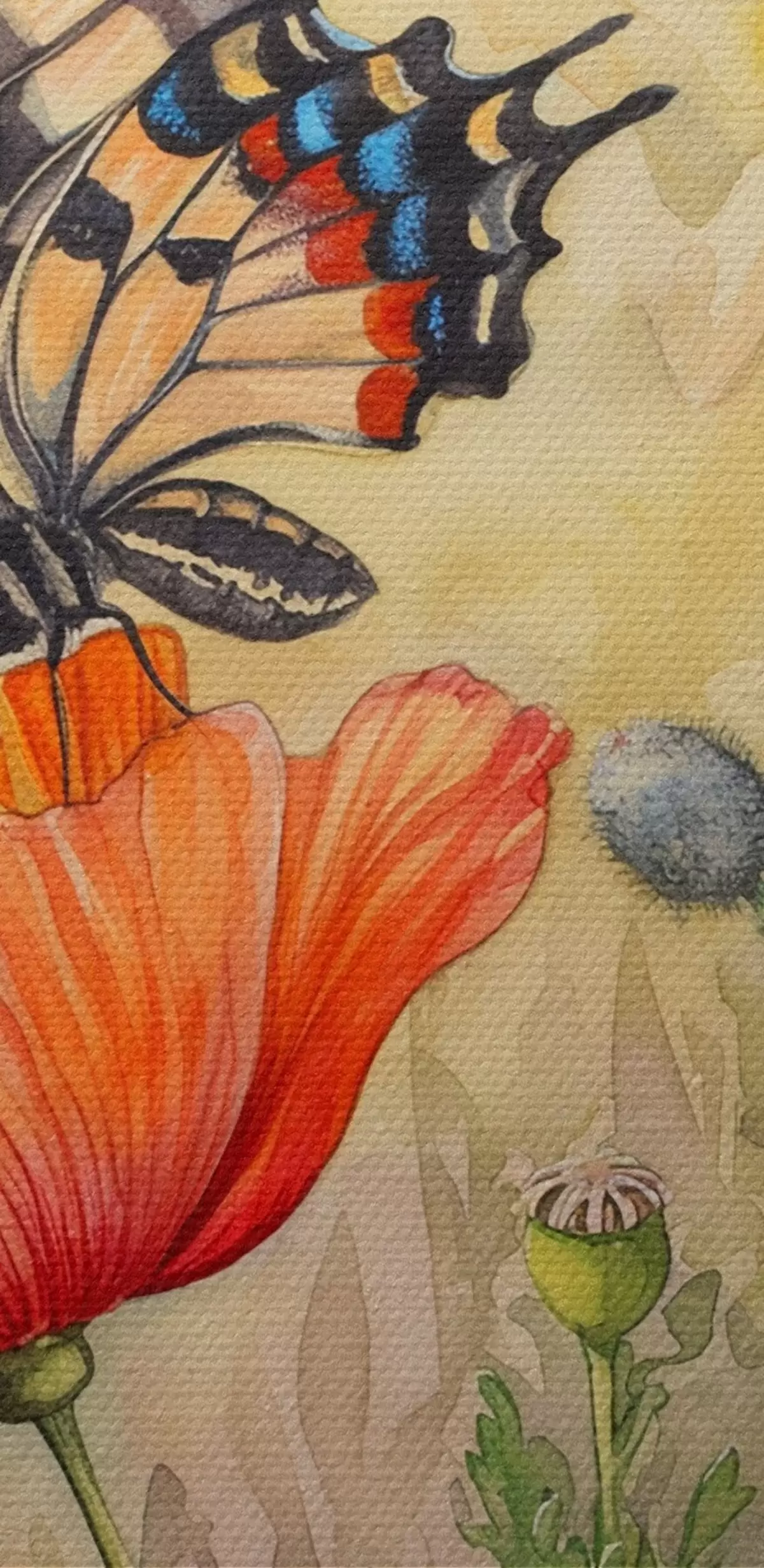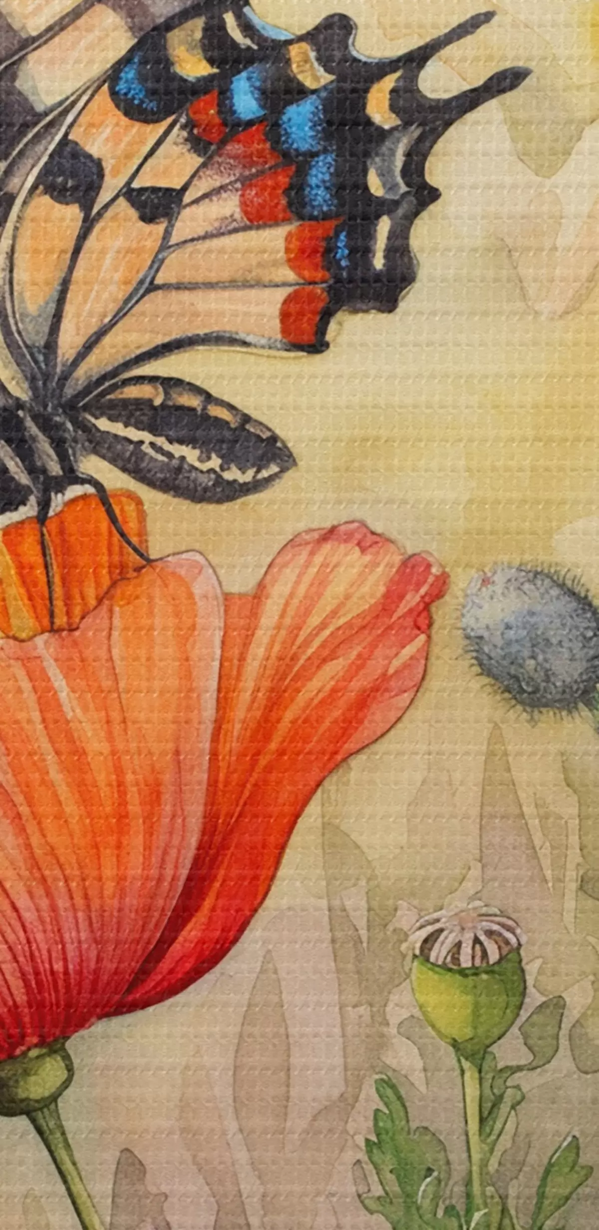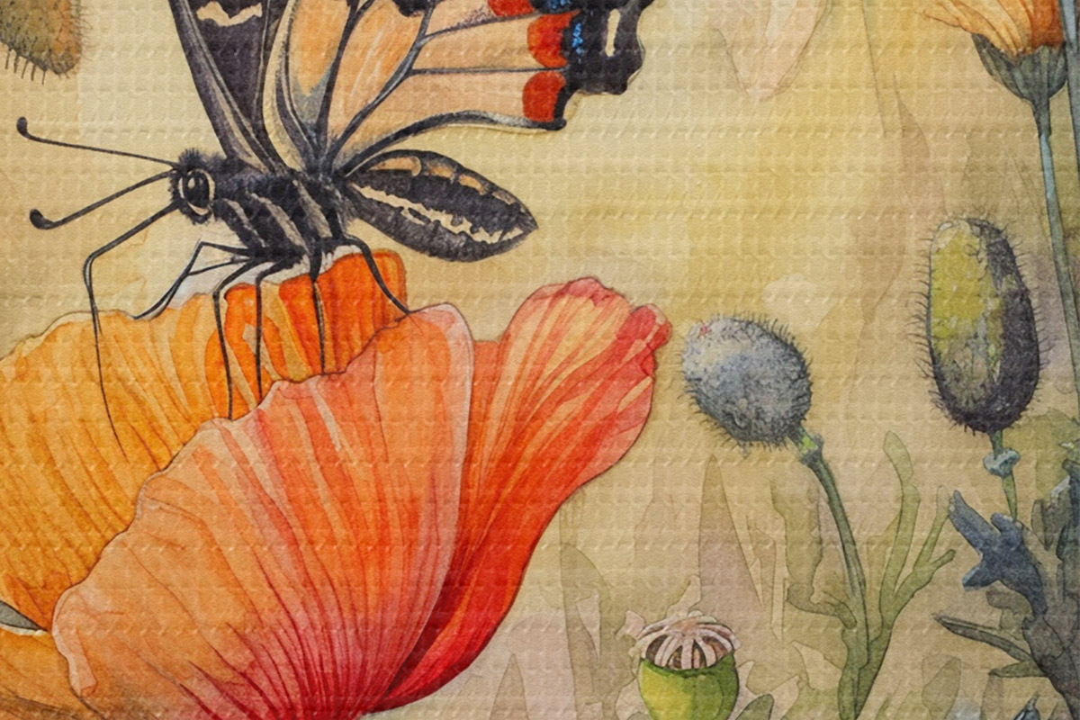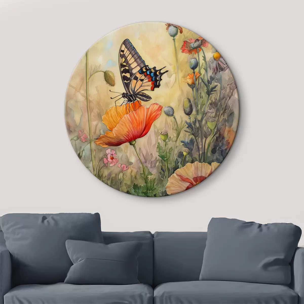 Tableaux rondes Champ de coquelicots et papillon r38520