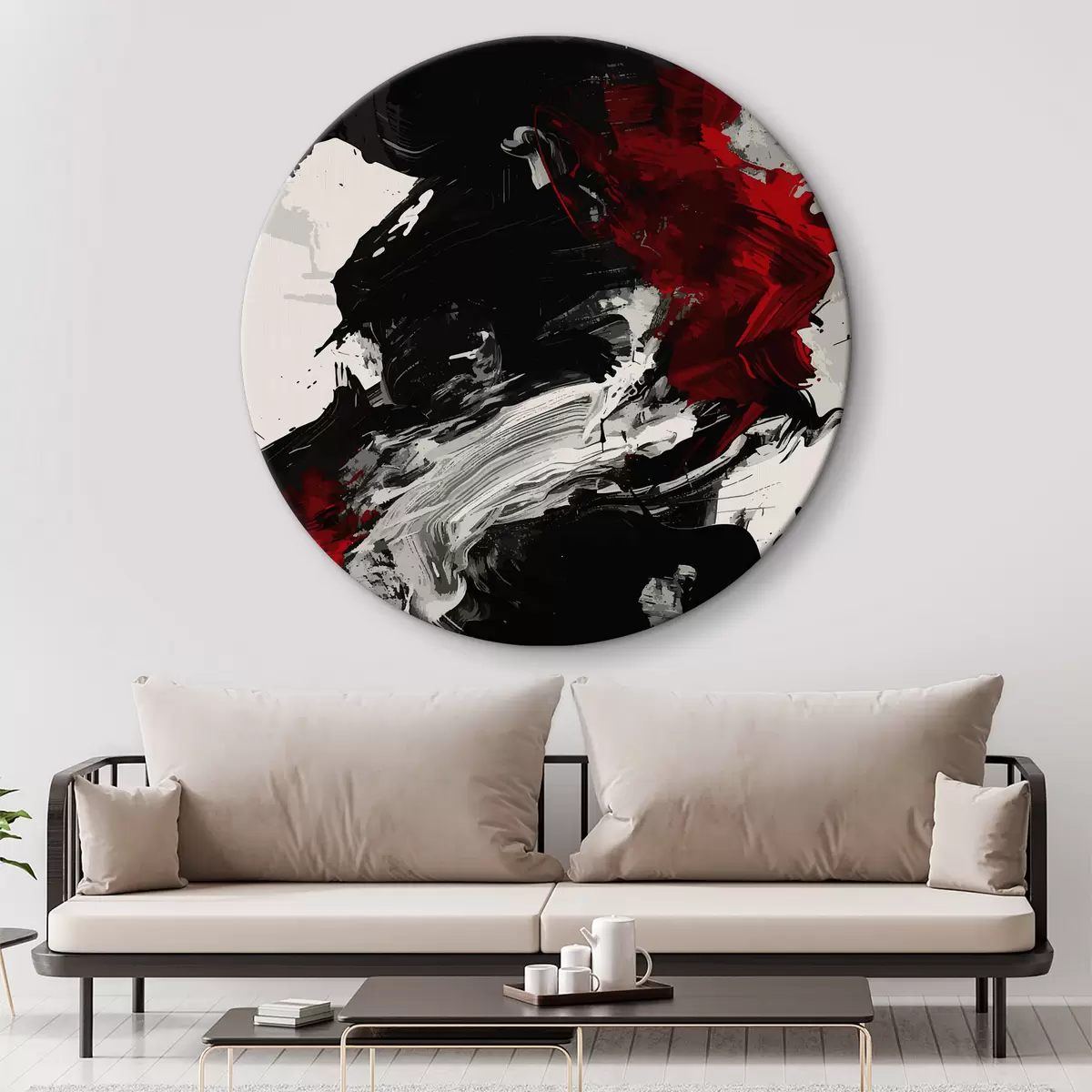 Tableaux rondes Abstraction noire et rouge Nr r38550