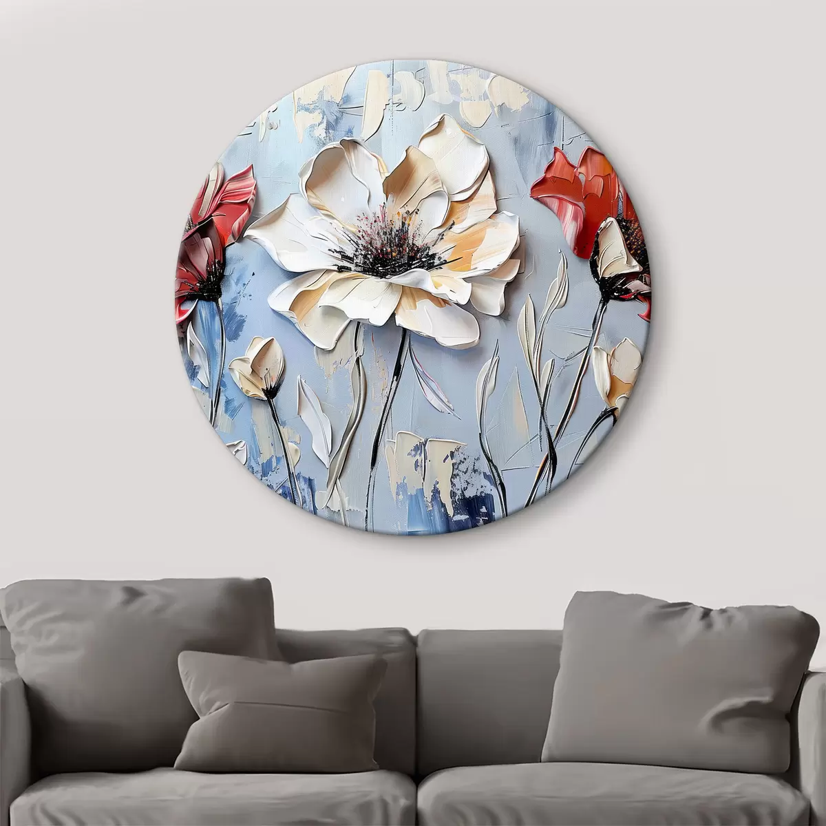 Tableaux rondes Fleurs vibrantes sur un fond bleu calme r38572