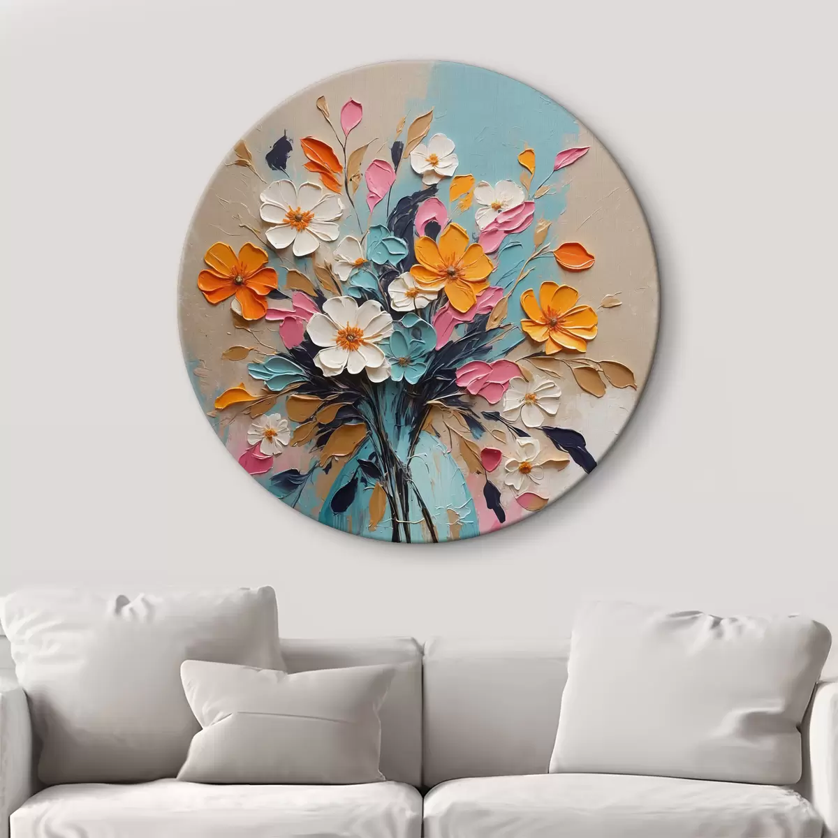 Tableaux rondes Fleurs dans un vase sur fond rose Nr r38585