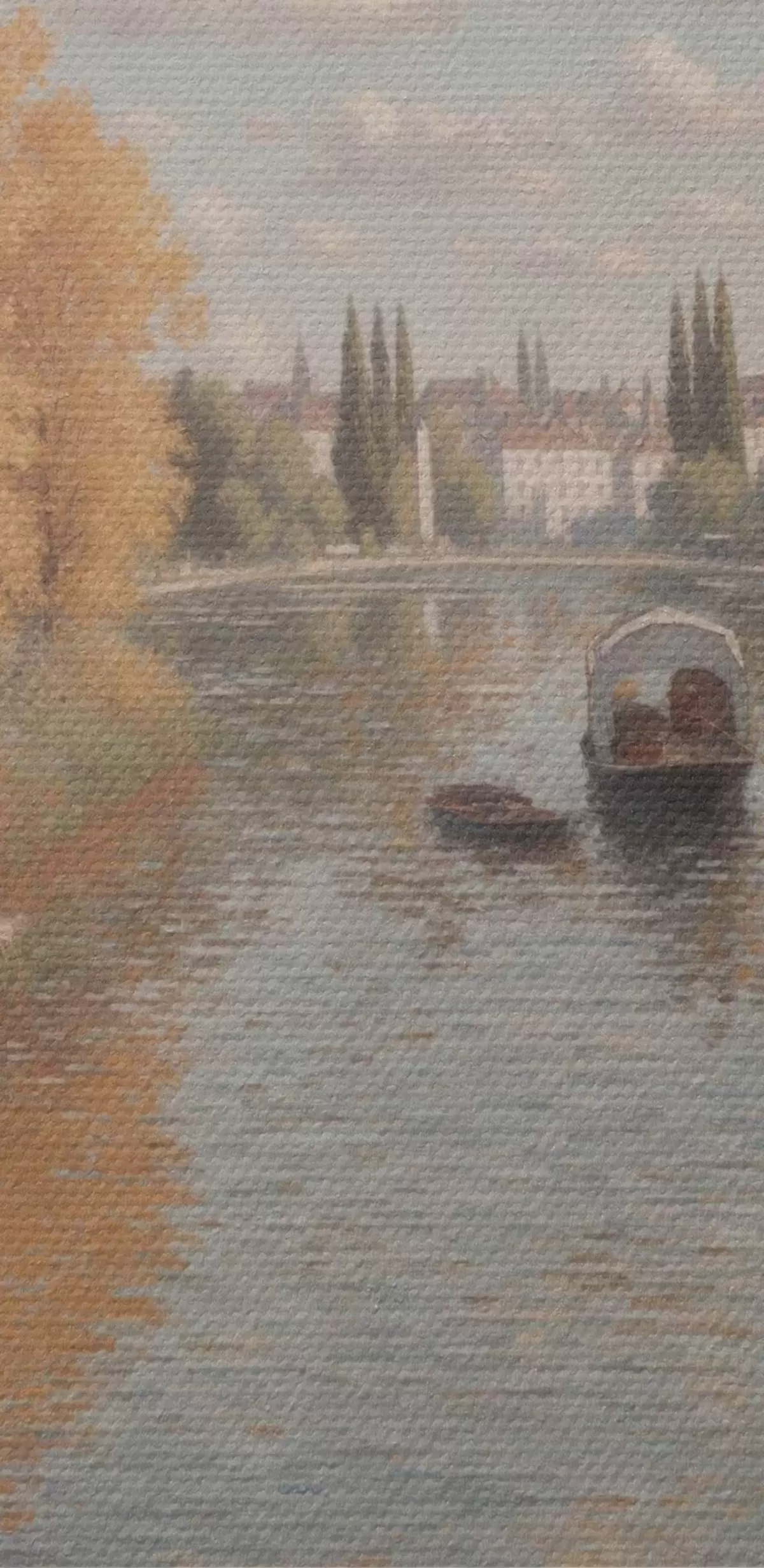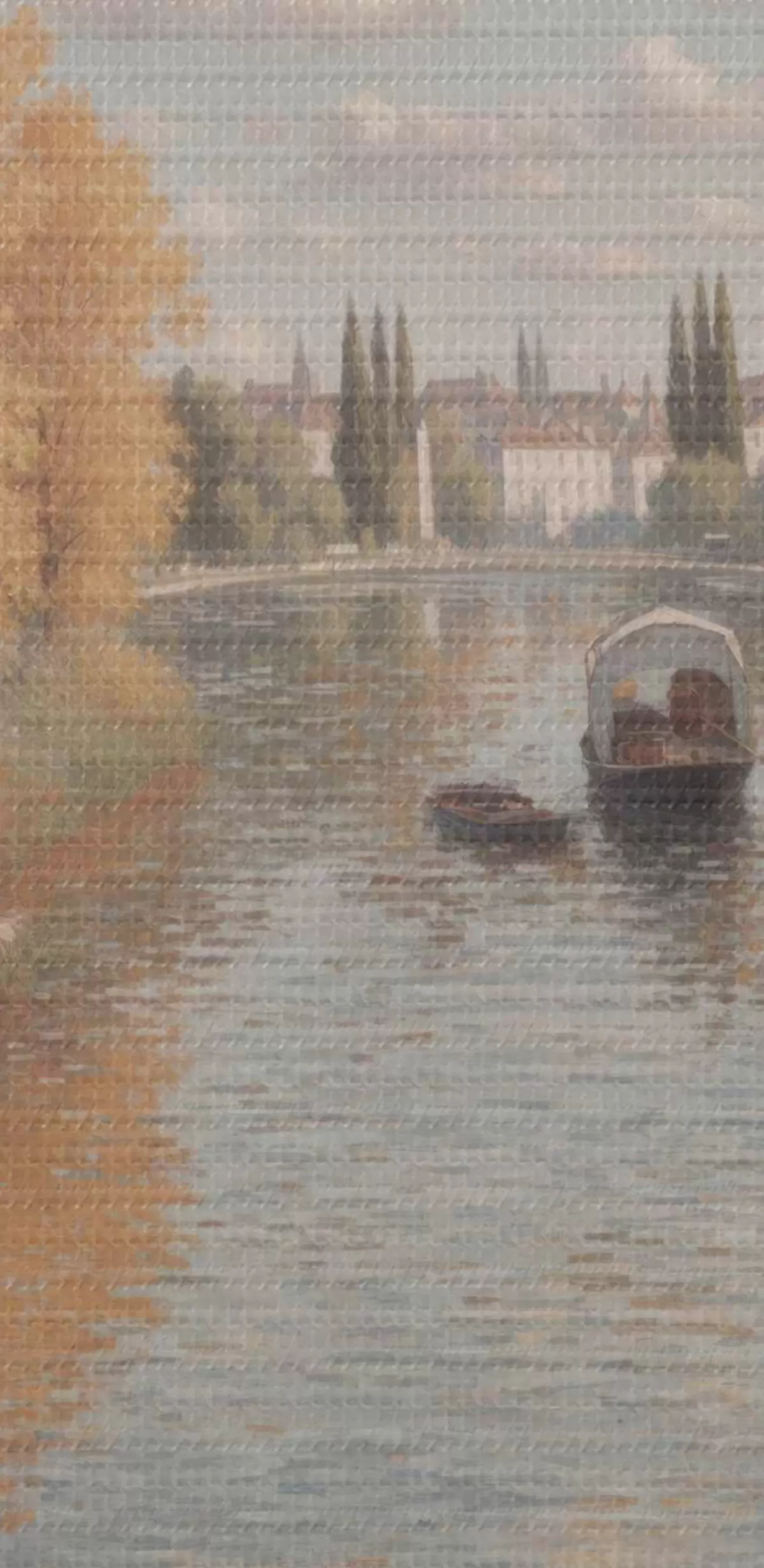 Tableaux rondes Peinture d'une rivière avec des bateaux et des gens Nr r38598