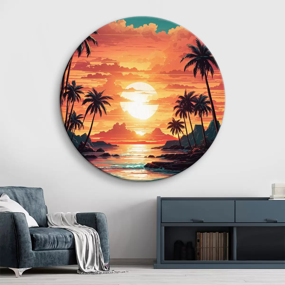 Tableaux rondes Coucher de soleil sur la plage r38599