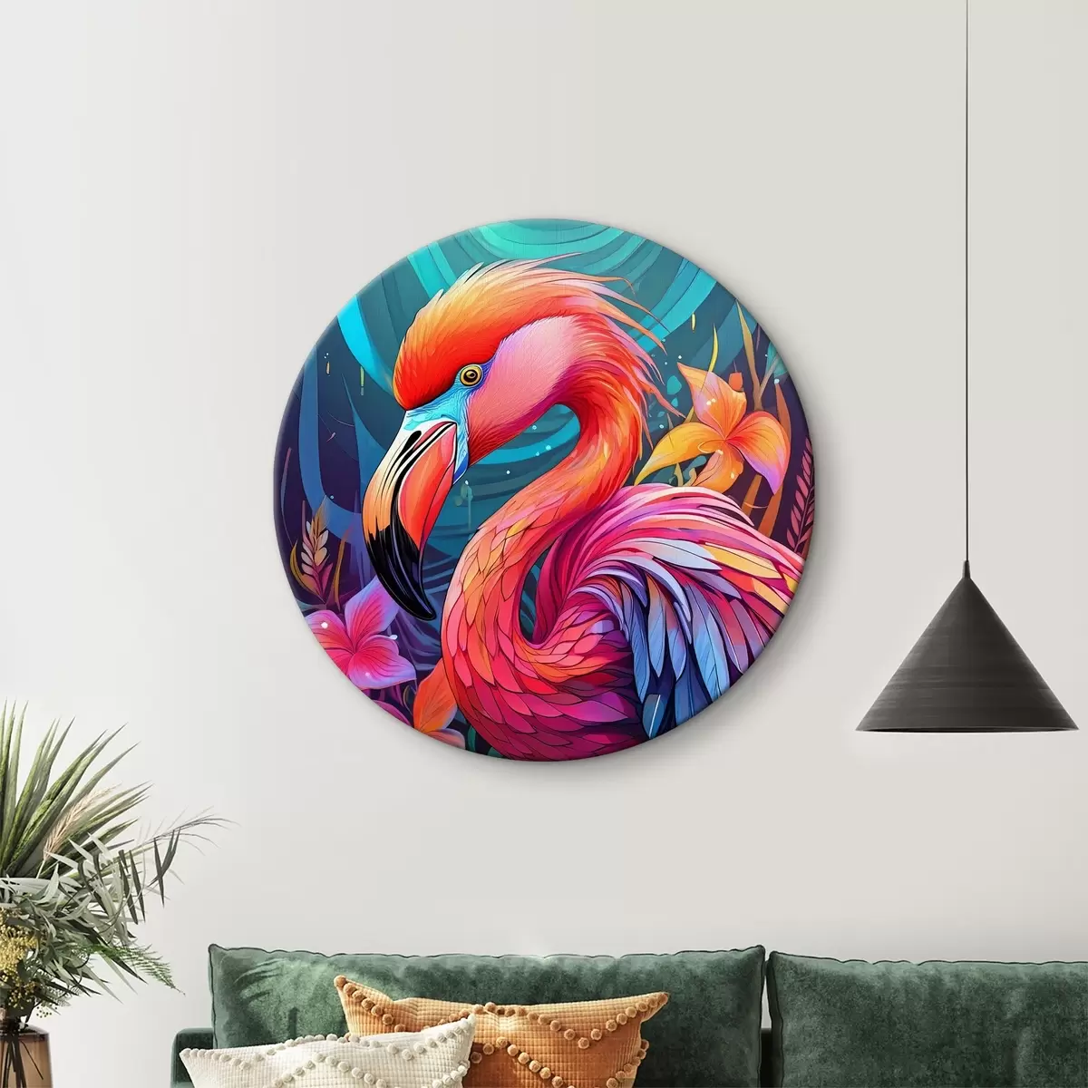 Tableaux rondes Flamant rose coloré avec des fleurs r38609