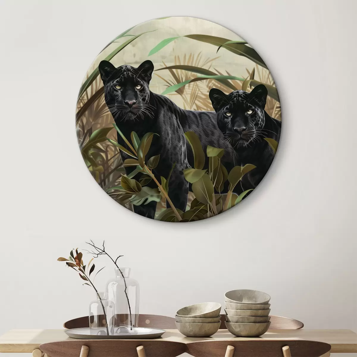 Tableaux rondes Deux tigres noirs dans la jungle Nr r38618