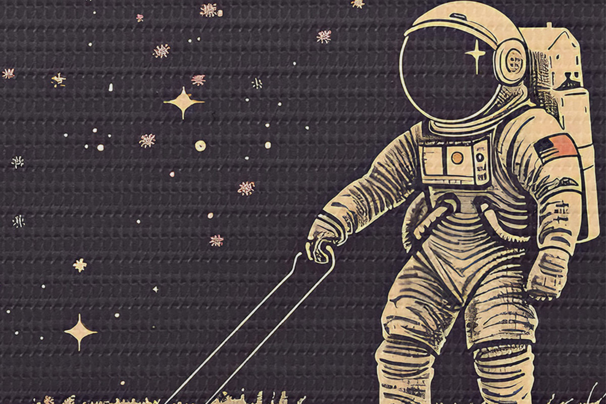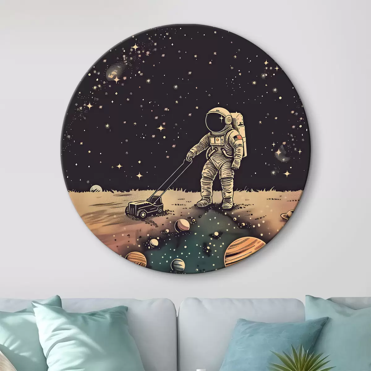 Tableaux rondes Astronaute avec tondeuse à gazon dans l'espace Nr r38637
