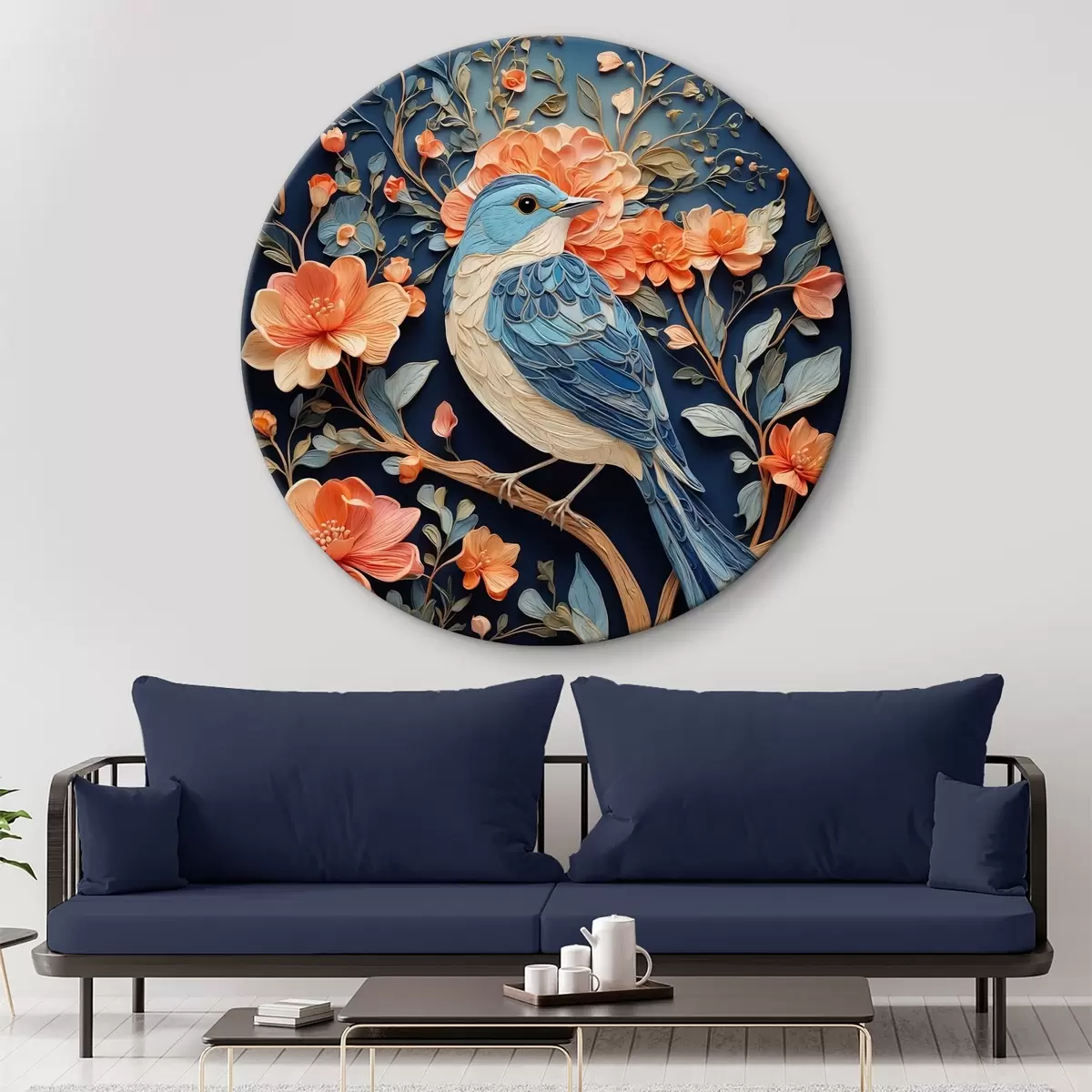 Tableaux rondes Un oiseau dans les fleurs Nr r38681