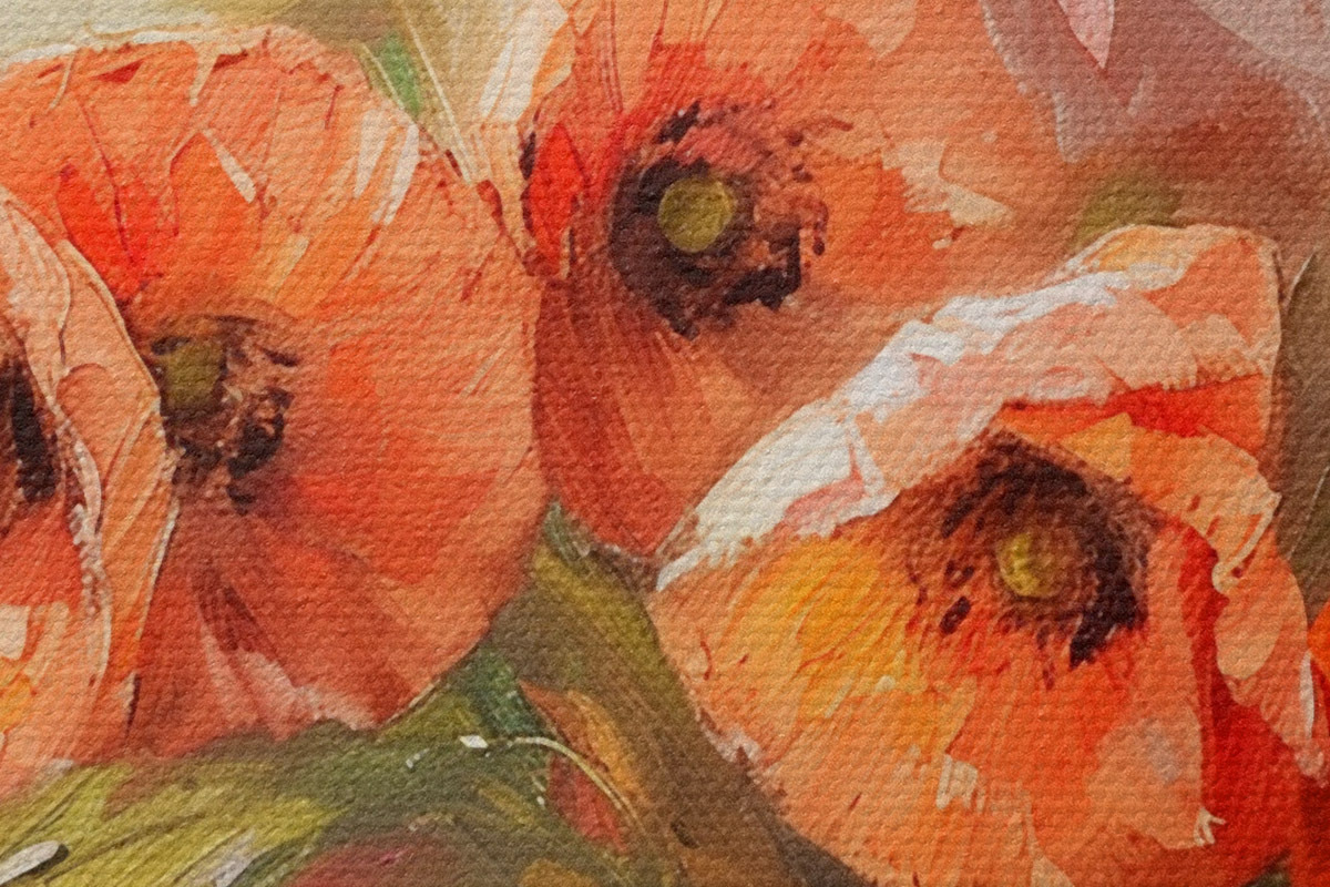 Trois types de matériaux peuvent être commandés : Economic Canvas - matériau dense et durable pour l'impression numérique, identique à la toile de peintre, surface imperméable, reproduction réaliste des détails, matériau à grain moyen. Premium Canvas - la texture ressemble à celle d'une toile de peintre (petits fils entrelacés). Reproduction douce et détaillée de l'image sur une surface mate. Eco-Premium - tissu 100 % coton de haute qualité. Grâce aux fibres naturelles de coton, le matériau est durable et résistant à l'usure. Excellente reproduction des couleurs et des détails.