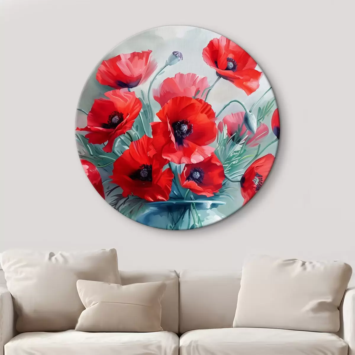 Tableaux rondes Coquelicots aquarelles dans un vase sur la table Nr r38695