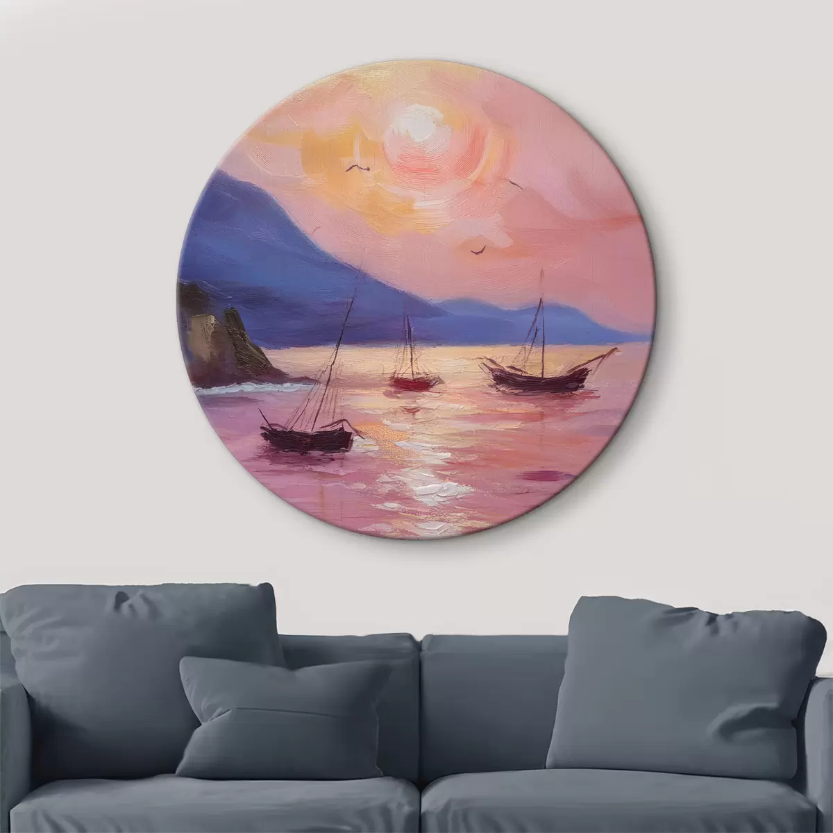 Tableaux rondes Lever de soleil rose sur la mer, avec des peintures à l'huile Nr r38731