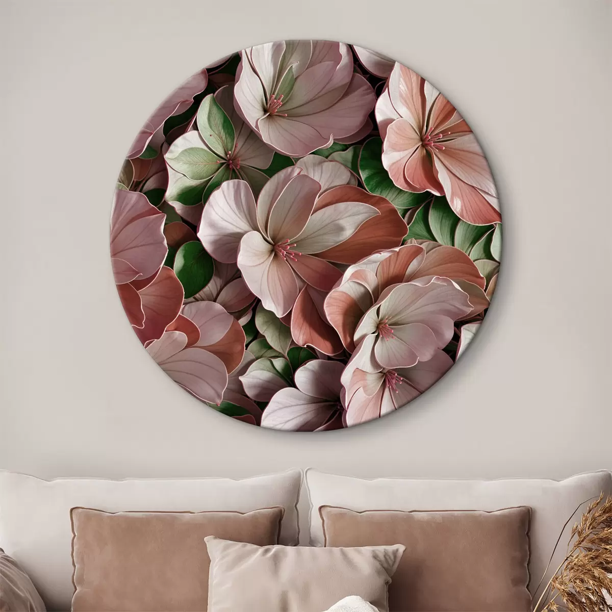 Tableaux rondes Fleurs roses et vertes Nr r38761