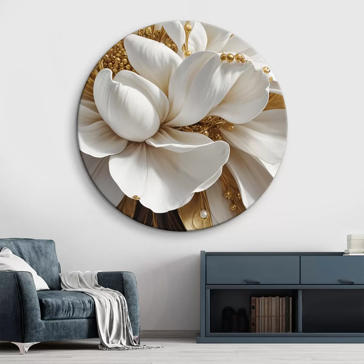 Tableaux rondes Pétales de la grande fleur blanche Nr r38762