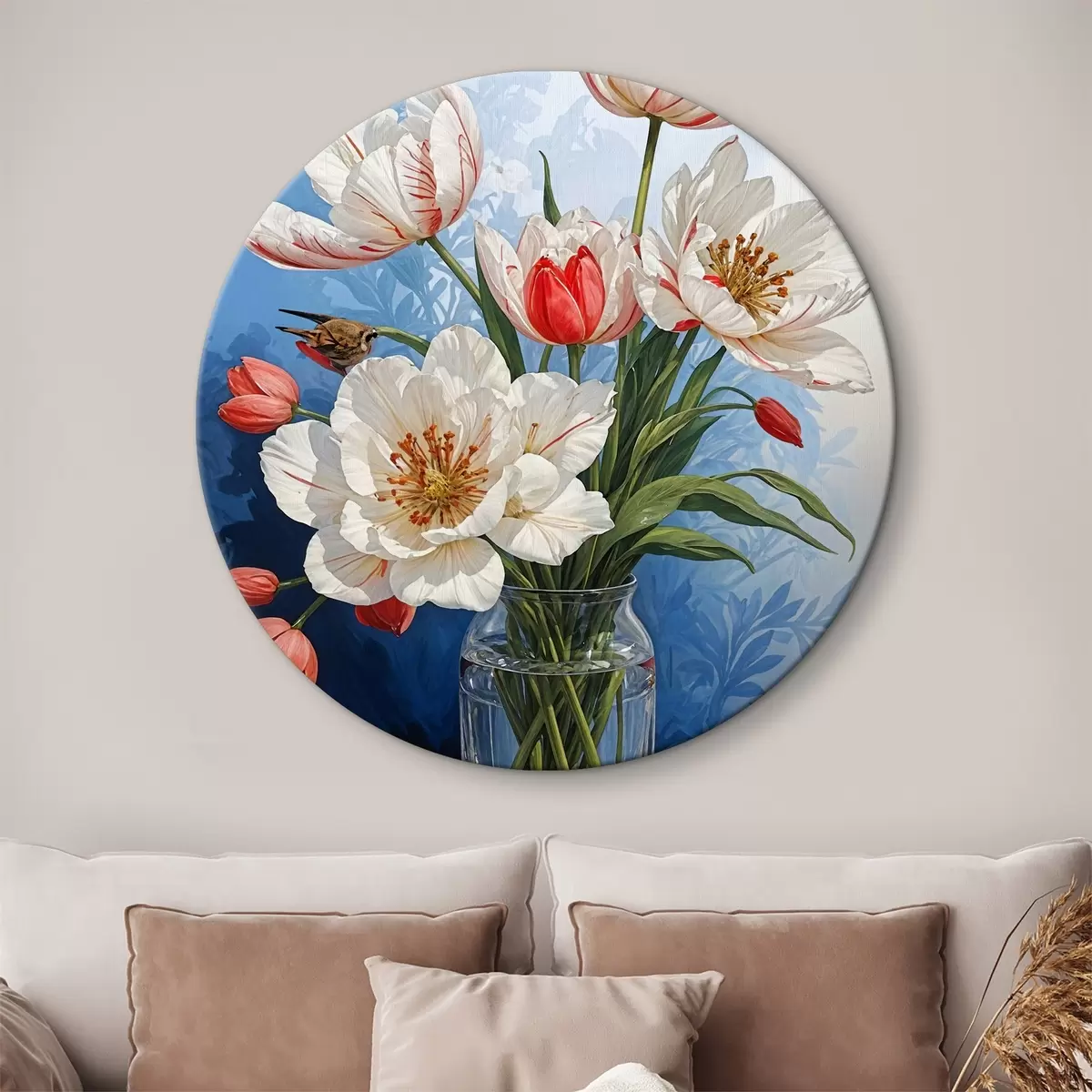 Tableaux rondes Vase avec grandes fleurs blanches Nr r38831