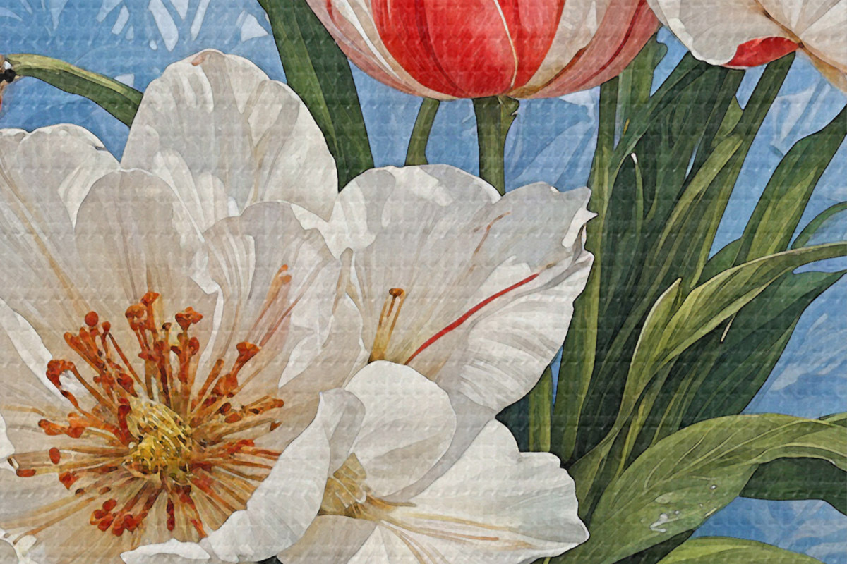 Trois types de matériaux peuvent être commandés : Economic Canvas - matériau dense et durable pour l'impression numérique, identique à la toile de peintre, surface imperméable, reproduction réaliste des détails, matériau à grain moyen. Premium Canvas - la texture ressemble à celle d'une toile de peintre (petits fils entrelacés). Reproduction douce et détaillée de l'image sur une surface mate. Eco-Premium - tissu 100 % coton de haute qualité. Grâce aux fibres naturelles de coton, le matériau est durable et résistant à l'usure. Excellente reproduction des couleurs et des détails.