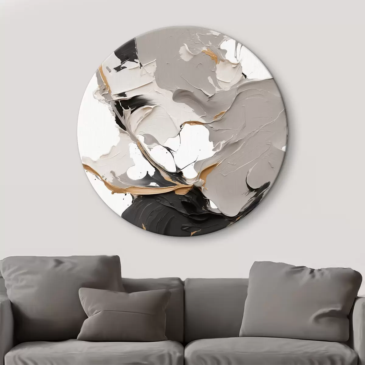 Tableaux rondes Peinture abstraite aux couleurs blanc et gris Nr r38855